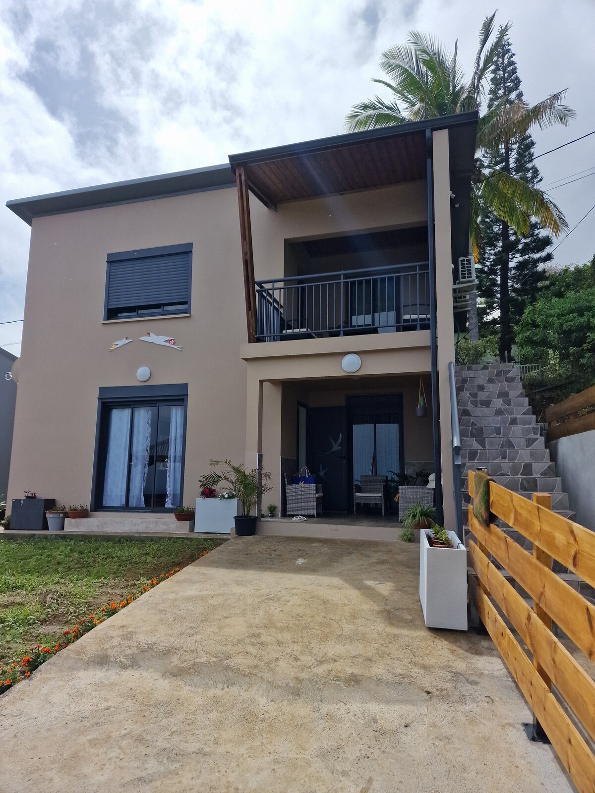 Bem-vindo ao nosso chalé acolhedor de 70m2, situado a uma altitude de 1200 m na Plaine des Cafres. Desfrute de um grande terreno florido e arborizado de 1000 m², uma piscina aquecida e uma vista panorâmica do Oceano Índico e do majestoso Piton des Neiges. Também vivemos no local e Mikilati ficará feliz em preparar bons pratos e cafés da manhã por reserva, ou compartilhar nossas dicas locais. Ideal para caminhadas até o vulcão, Grand Bassin, etc...