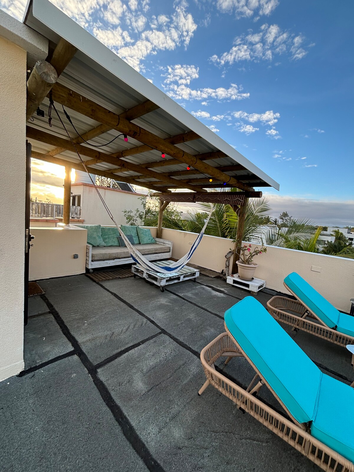 Nichée dans un jardin créole luxuriant, notre villa offre un havre de paix. Parfaitement équipée, elle allie confort moderne et charme tropical avec son rooftop et sa piscine pour se detendre. Proche des activités comme le snorkeling, les excursions en bateau et les randonnées, c’est le lieu idéal pour explorer l’ouest mauricien. Vous allez adorer notre villa calme pour son emplacement à 5min à pieds de la plage de la Preneuse et à côté des restaurants, commerces et d’un supermarché.
