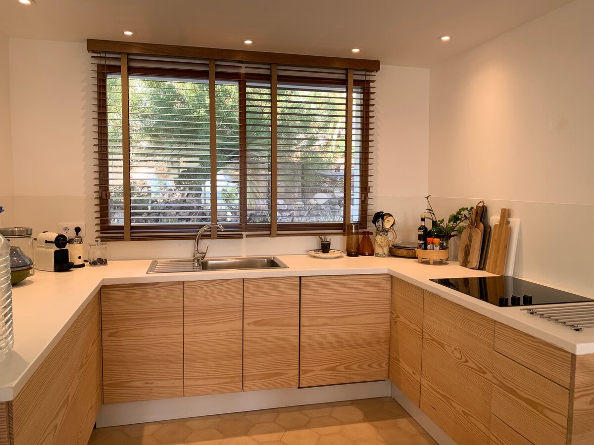 Acordar com uma vista para o mar. Estar em casa em suas férias de 200 m ², mobiliado com histórias e móveis do mundo inteiro - azulejos e pisos de madeira. Três quartos iluminados inundados com janelas grandes e todos eles com acesso ao terraço ou varandas. Área de estar e cozinha aberta, um terraço parcialmente coberto com uma grande mesa e vista para o mar. Lá em cima, duas grandes varandas com sofás e uma rede para tomar banho de sol ou relaxar - e talvez dormir lá fora sob um céu cheio de estrelas.