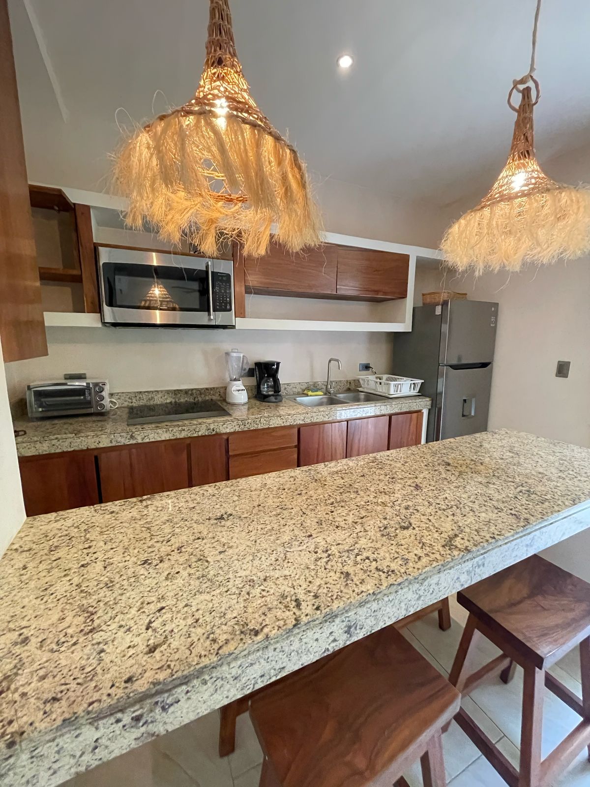 Descubre la tranquilidad y el lujo en nuestro moderno departamento situado en medio de la selva en Tulum. Este acogedor espacio de dos habitaciones ofrece una experiencia única, disfruta vistas impresionantes a la piscina desde tu propio balcón. Prepara la comida para la familia en una cocina completa y funcional. Ubicado en una zona tranquila pero cerca de las principales atracciones de Tulum. El departamento ofrece la combinación perfecta de confort y conveniencia.