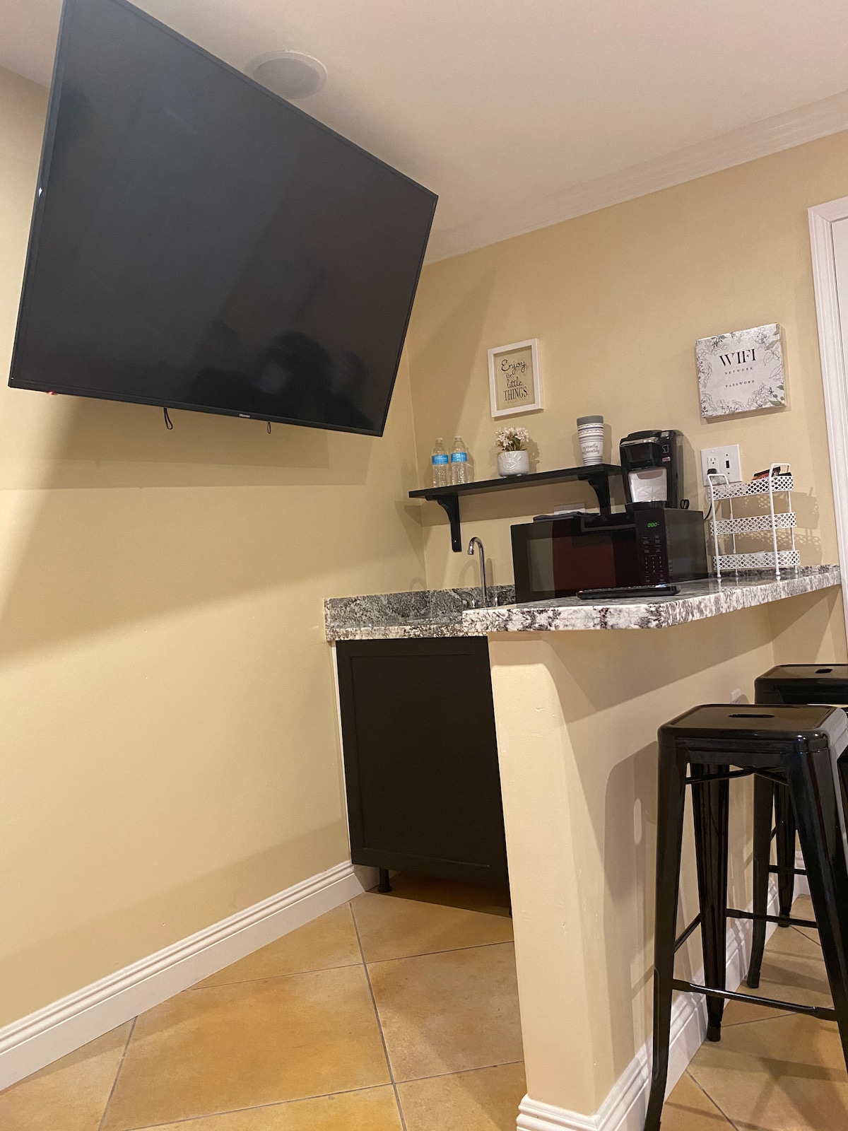 Suíte Leste: 580 pés quadrados, 2 quartos, entrada sem chave, sala de estar separada, quarto, perfeito para estadias de longa duração! Recentemente renovado, muitas comodidades, móveis novos, decoração elegante, espaçoso e confortável; Wi-Fi de alta velocidade. Cozinha acoplada com todos os eletrodomésticos, torneira de água potável filtrada, todas as necessidades para cozinhar básico. Cama Queen equipada com roupa de cama de qualidade de hotel de alta qualidade. Estacionamento fechado seguro. Condado de LA, perto de tudo no sul da Califórnia. 2ª suíte adjacente disponível. ESTADIAS MENSAIS DISPONÍVEIS.