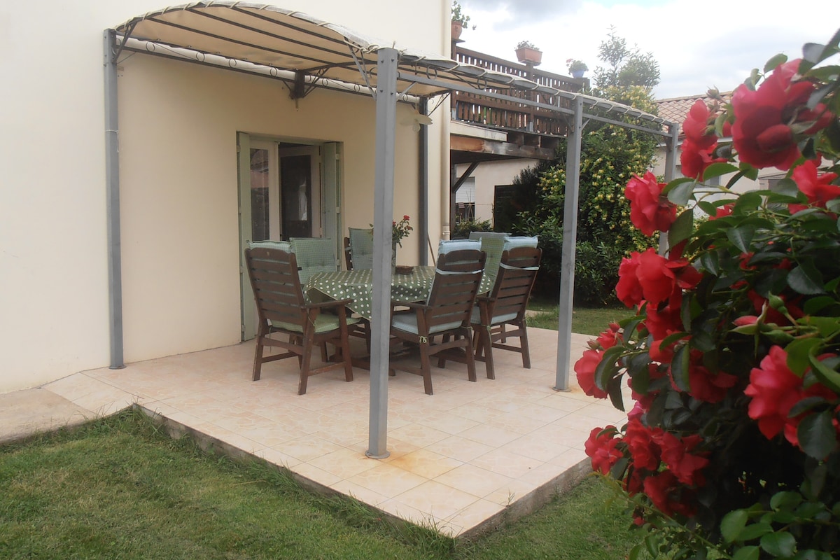 We will be delighted to welcome you to this 24 m2 studio, functional, all comfort, renovated, in a quiet, independent area, next to our residence, 10 minutes walk from the centre of Bergerac. It is equipped with all amenities: double bed, small living room, kitchen, independent bathroom, Freebox with wifi, TV, air conditioning, Plancha on demand...etc. . Outdoor relaxation area. New sheets, duvet and towels are provided. Free parking. All services nearby Andréa / Gérard
