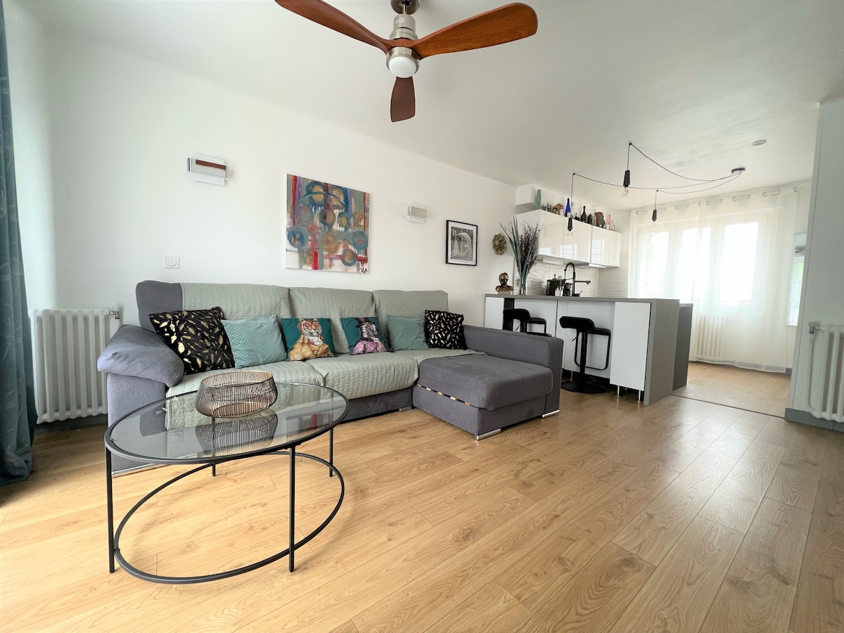 No tranquilo bairro do Hippodrome des Fleurs, esta casa de 3 quartos tem um spa privativo, um terraço ensolarado e um cinema em casa para noites amigáveis. Ideal para relaxar com a família ou amigos, está totalmente equipado para o conforto ideal. Lojas e restaurantes nas proximidades, parque Lac Marion 5 min, centro da cidade 20 min, Grande Plage 30 min a pé. Check-in autônomo. ⚠️ Sem festas, sem barulho, apenas hóspedes respeitosos.