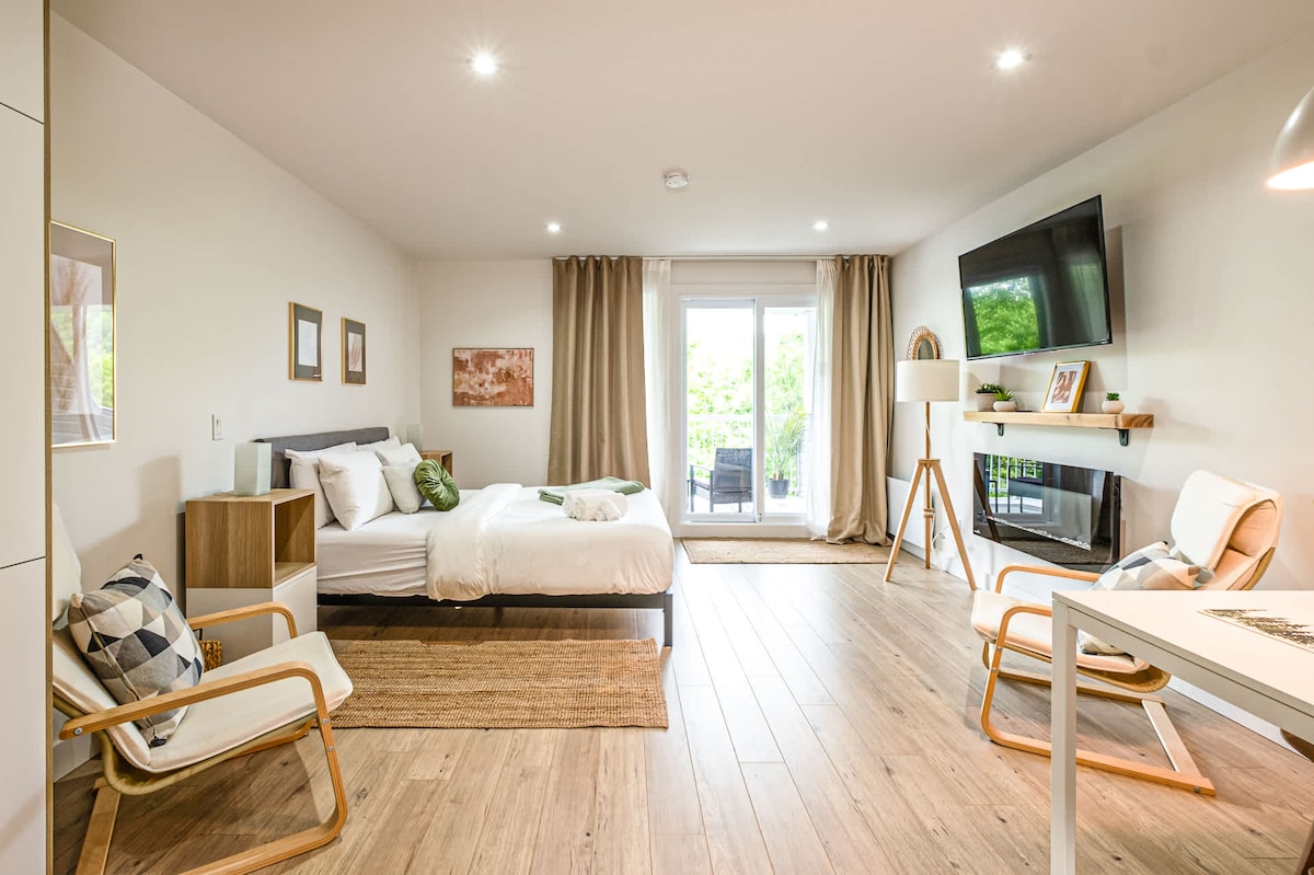 Melhor preço por custo-benefício ㋛ *Perto do resort de montanha * Localizado na antiga vila Estúdio moderno inteiro mobiliado com bom gosto, cozinha completa com novos eletrodomésticos, grande varanda privativa, estacionamento. Ar-condicionado portátil Wi-Fi rápidoe ilimitado + TV 4K Dentro de 10 min de carro para: •Tremblant Village resort para esqui,caminhada,compras,ciclismo, restaurantes, cassino, spa. • A uma curta distância: parques, ciclovias, lagos, boutiques, restaurantes, café, (piscina compartilhada/banheira de hidromassagem durante o verão/outono) Reserve com uma experiência completa Mont-Tremblant ㋛