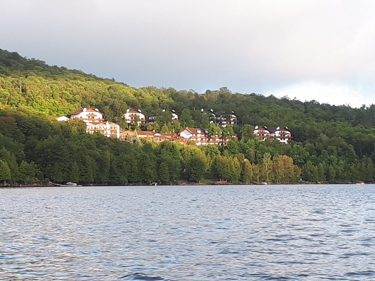 Cozy and warm condo located on the shore of Lake Tremblant, fully renovated, with an amazing view of the ski hills, village, and the lake. The condo is equipped with an HD TV, unlimited speed internet, fireplace, full kitchen, and A/C. The unit has one bedroom with a Queen bed and a living area with a sofa bed that can accommodate 2 kids . The unit can sleep comfortably a family of 4 (with kids)