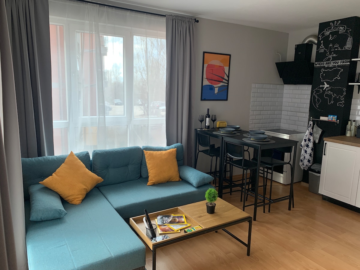 Nosso apartamento está situado em um edifício, bem ao lado do parque da cidade de Geo Milev. Situado convenientemente entre o aeroporto e o centro da cidade, este é um local muito tranquilo e também perto de ligações de ônibus, adequado para solteiros, casais e viajantes de negócios. O design e a decoração confortáveis farão você se sentir em casa e ajudá-lo a relaxar após o dia agitado. Se você quiser fazer compras, tenha em mente que o shopping "Serdika" está a uma curta distância a pé. Descontos para visitas mais longas