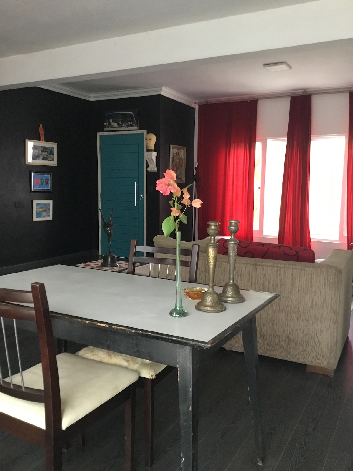 Linda casa espaçosa, cheia de arte e sossego.