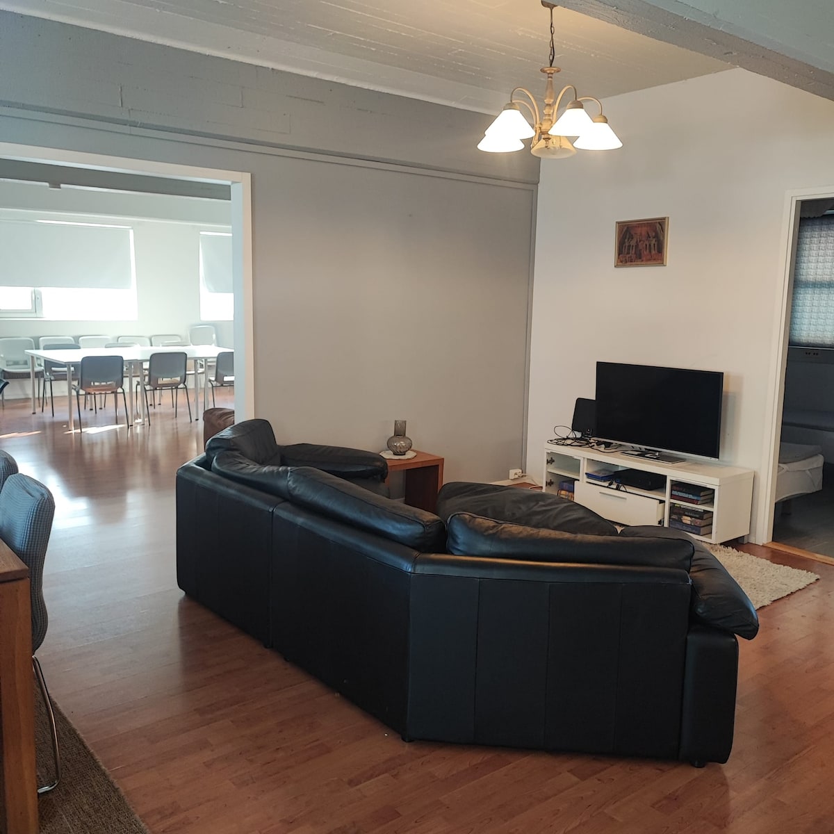 Venha desfrutar de uma casa idílica dos anos 50 no centro da cidade. Você ficará no 1º andar de um prédio sem elevador (aproximadamente 8 degraus por andar). Você tem seu próprio espaço de estacionamento com um poste de aquecimento e um apartamento espaçoso de mais de 50 metros quadrados. Você pode se locomover facilmente a pé (15min) ou de scooter elétrica (5min) até o centro da cidade. Nas proximidades, você encontrará mercearias, uma parada de ônibus (100m) e uma área de corrida arborizada. A bela área portuária de Lahti está a poucos passos de distância.