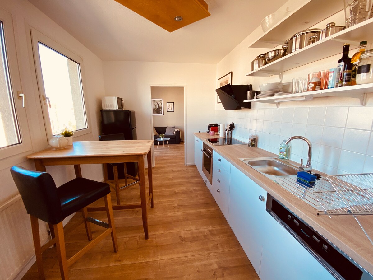 Apartamento aconchegante e espaçoso na cidade com varanda