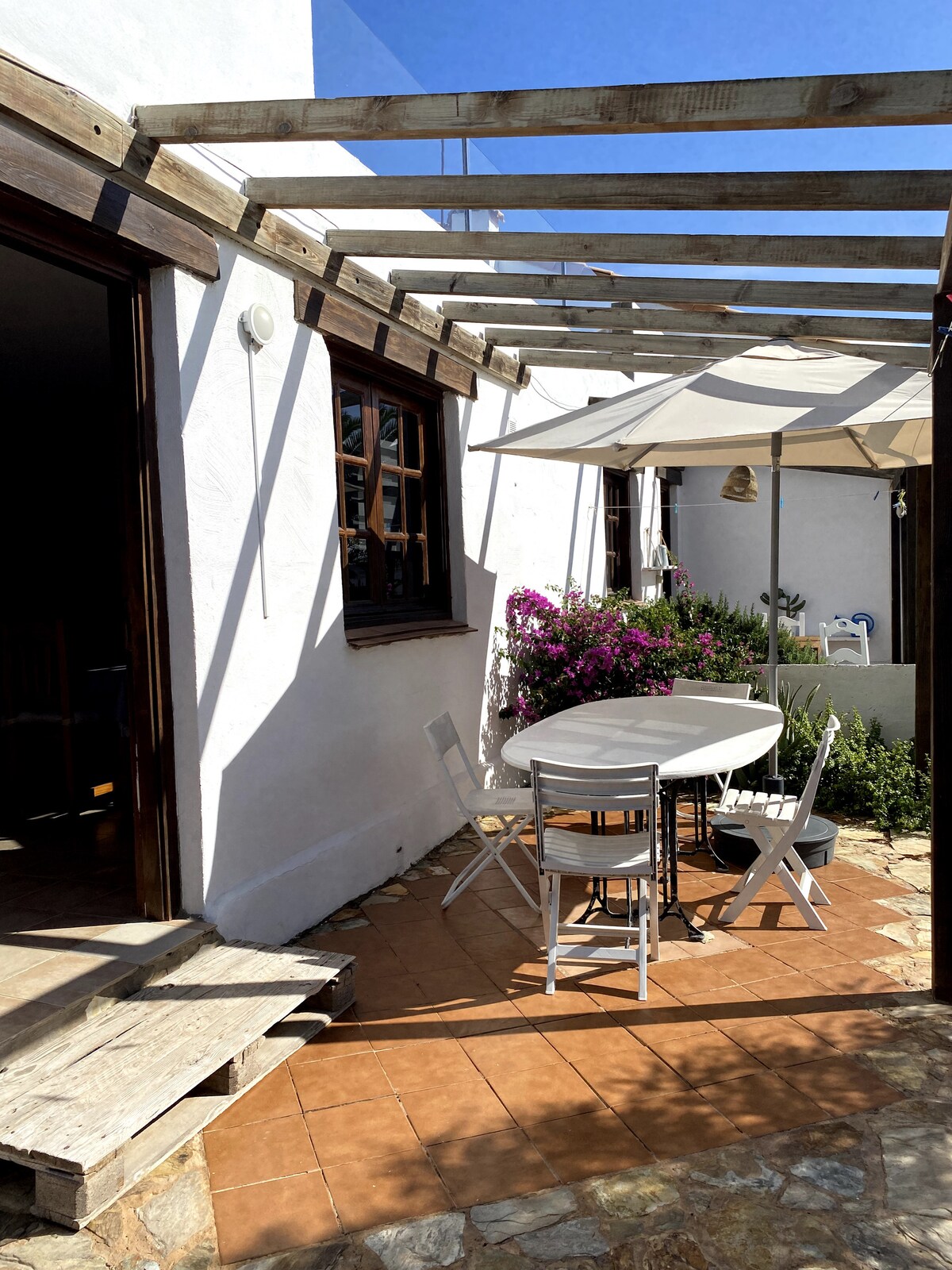 Relaxe neste espaço tranquilo localizado no centro da aldeia de Lajares, a apenas 5 minutos a pé da rua principal, onde você encontrará um supermercado, farmácia, bares, pizzarias e restaurantes. Ideal para casais ou casais com até dois filhos. A casa dispõe de um quarto com uma cama de casal e um segundo quarto com uma cama de solteiro, além de uma cama dobrável. A Orange House fica ao lado da nossa escola de surf, onde você pode reservar aulas de surf ou ioga ou alugar pranchas de surf (é necessário reservar com antecedência).
