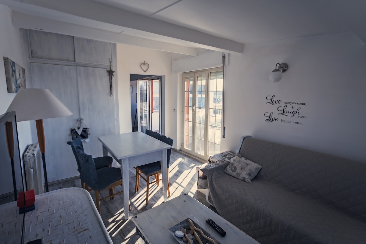 Moderno, aconchegante com uma vista espetacular do mar. Um quarto de casal, uma sala de estar com TV e muitos DVDs e CDs de música, uma estante com ótimos livros de todos os tipos, um sofá-cama confortável, bem como uma cozinha bem equipada. O banheiro é moderno com um chuveiro. O terraço com vista para o mar é a verdadeira joia, ideal para relaxar e desfrutar de refeições. E se você quiser tocar, pegue o violão! A 5 minutos da estação ferroviária, tornando Roma facilmente acessível em pouco tempo