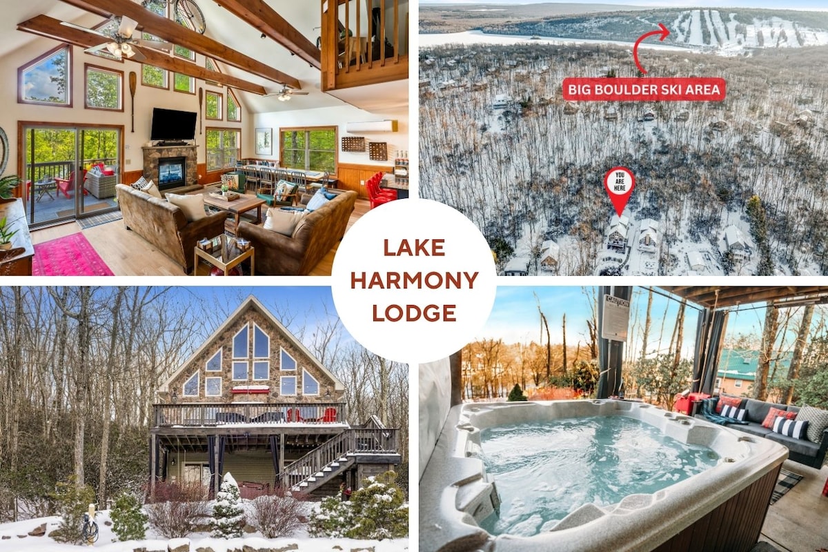 Experimente a serenidade neste chalé de 4 quartos em Poconos, aninhado na floresta perto de um lago deslumbrante. Este paraíso espaçoso e de conceito aberto é ideal para famílias grandes que desejam uma escapada tranquila da agitação da vida urbana. Relaxe no deck, aproveite a sala de jogos, reúna-se ao redor da lareira ou aconchegue-se no loft. Há alegria para todos. Lake Harmony - 5 minutos de carro Big Boulder - 8 minutos de carro Jack Frost Ski Resort - 12 minutos de carro Sua aventura em Poconos começa aqui - Descubra mais abaixo!