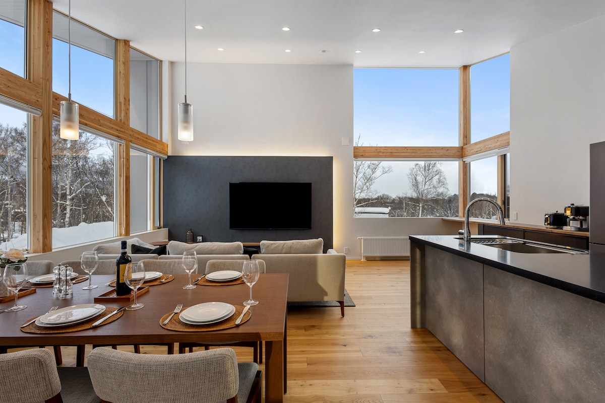 Escondido em meio a Shirakaba (Silver Birches), convidamos você a experimentar a mistura perfeita de luxo moderno e charme tradicional japonês. Imagine chegar em casa com o abraço caloroso da lareira a gás e relaxar no banho de estilo japonês Ofuro depois de um dia nas encostas de Niseko. Kumirin possui um quarto principal com suíte, beliche que acomoda confortavelmente 4 hóspedes e sala de tatame com futons de estilo japonês para 2 hóspedes, proporcionando uma experiência autêntica de vida japonesa.