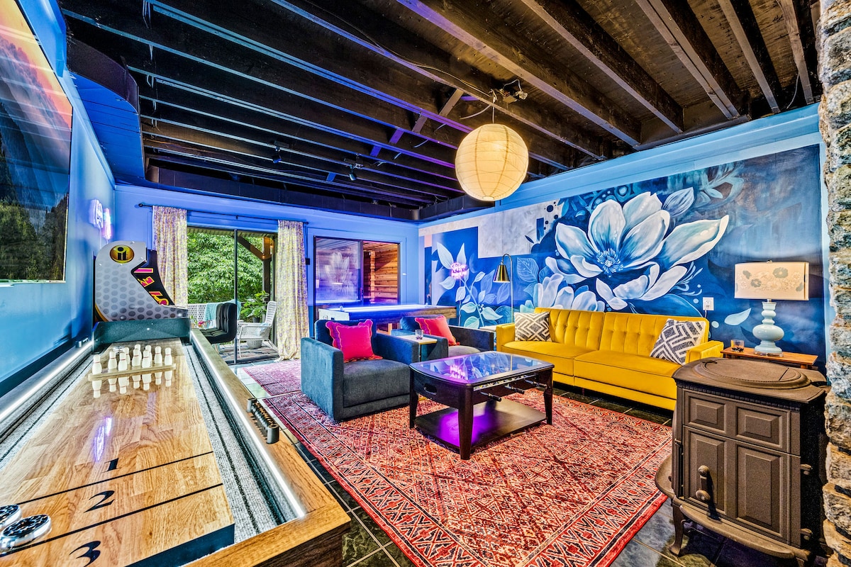 Alpine Haven é um luxuoso chalé de mais de 3.000 pés quadrados situado no topo de uma montanha a poucos minutos do centro de Black Mountain (<20min de AVL). Aproveite vistas de tirar o fôlego em decks amplos, relaxe na sauna ou reúna-se ao redor da fogueira. Uma sala de jogos, lareira a gás aconchegante dentro e lareira a gás no convés, e decoração elegante da montanha criam o retiro perfeito para famílias e grupos. *Observação*: uma casa de hóspedes separada fica ao lado, mas a privacidade foi cuidadosamente garantida para uma estadia tranquila.