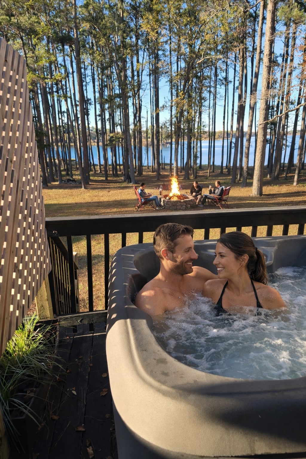 A beautiful glamping dome with a hot tub overlooking the lake. A short walk from the Magnolia Dome over to the glampground’s shared facilities you’ll find a full bathroom, 2 outdoor showers, and a laundry room (on request.) Lake access and fishing included in your stay! As well as the following: Fishing equipment Peddle-boat Kayak (sit-in & on) And more… Please keep in mind we live onsite with our family which includes several dogs and small children.