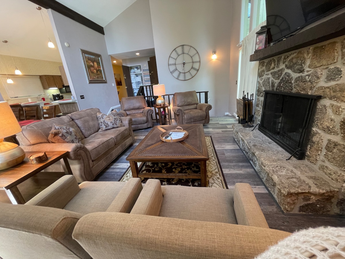 Casa construída em 2021 com todas as comodidades que você poderia querer. Áreas de estar espaçosas, ótimas para famílias ou grupos - banheiros privados para cada quarto e muito espaço para refeições e espaço ao ar livre para diversão e entretenimento. Fogueiras ao ar livre no ponto e no pátio. Uma propriedade muito única sentada em um ponto com vistas incríveis para o canal principal em duas direções. Ótima preparação para nadar, pescar ou curtir jogos na doca. A 2 horas e meia de KC, Wi-Fi em toda a propriedade.