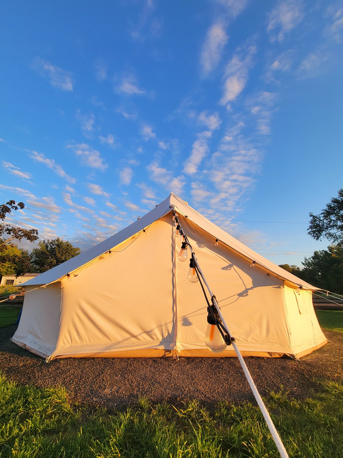 Procurando uma maneira acessível de ficar em PEC? Glamping pode ser perfeito para você! Esta espaçosa tenda Glamping faz parte do Ray 's Cottages and Campground. Convenientemente localizado à beira do lago, no coração da região vinícola, com proximidade com a vila de Wellington. A uma curta distância de carro de North Beach ou Sandbanks Provincial Park. Orgulhamo-nos ou fornecemos um ambiente descontraído para famílias e animais de estimação.