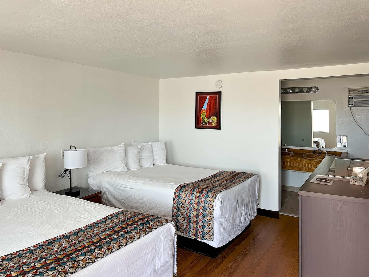 Convenientemente localizado perto de Glen Canyon e Lake Powell, o Super 8 by Wyndham Page é a base perfeita para passeios turísticos, passeios de barco e aventuras no deserto. Este quarto com duas camas queen-size oferece micro-ondas, geladeira e TV HD — ideal para amigos ou famílias. Desfrute de café da manhã de cortesia, acesso à piscina externa e estacionamento gratuito antes de explorar as paisagens de rochas vermelhas.