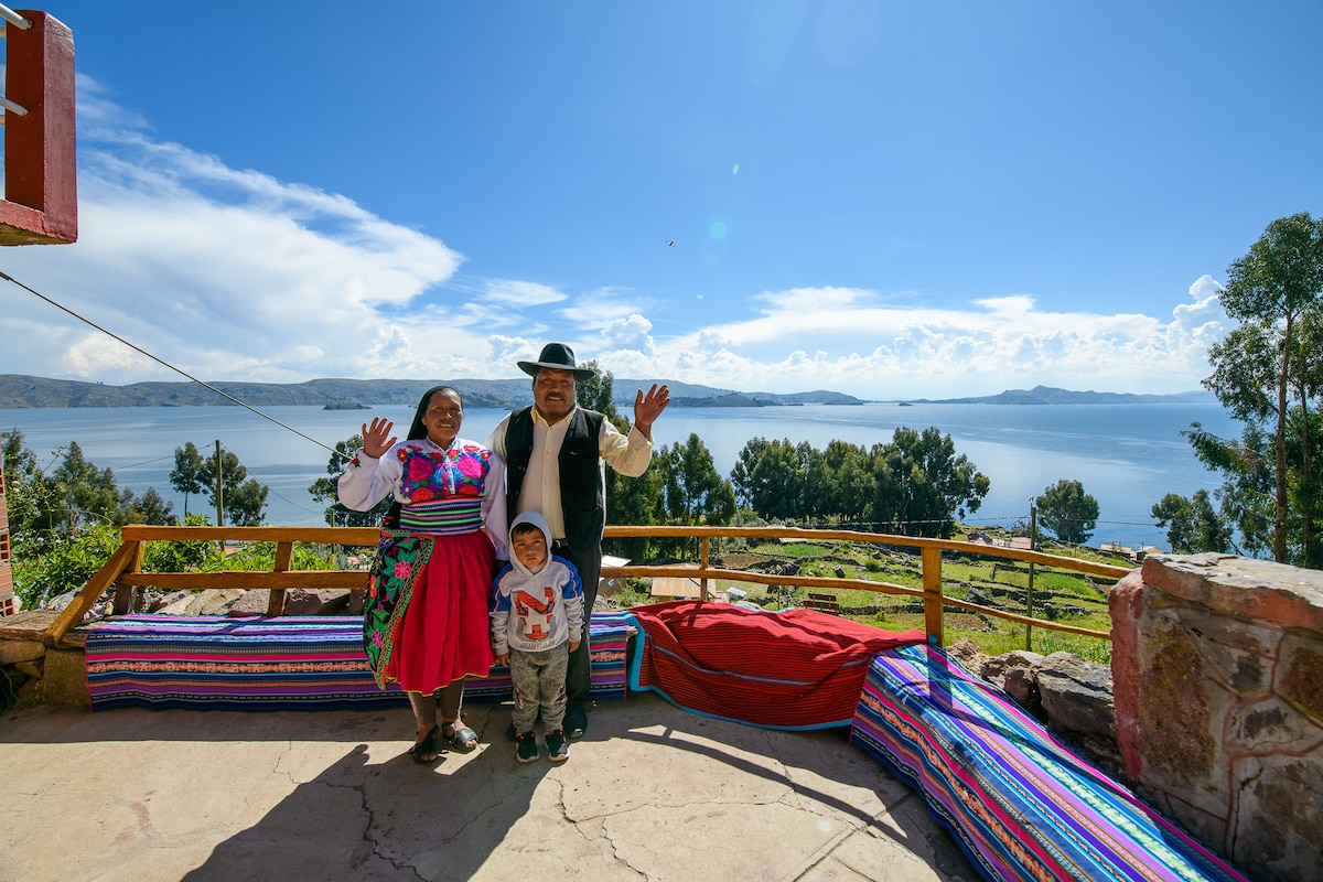 Desfrute de uma experiência autêntica nas ilhas flutuantes de Uros, no Lago Titicaca. Esta casa de família, construída por uma guia local, permite que você conheça de perto uma cultura milenar que vive em ilhas feitas de totora. Inclui traslado de Kalapaja e transporte para a ilha. Você será recebido pela sua família anfitriã, que compartilhará seu estilo de vida e hospitalidade com você. Ideal para quem quer relaxar, vivenciar algo diferente e se conectar com a natureza e a cultura local.