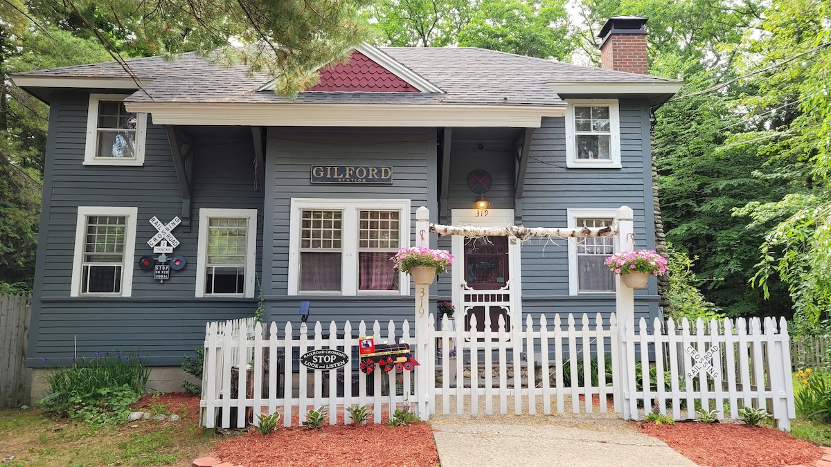 Nestled between Gunstock Mountain and Lake Winnipesaukee, Hidden Creek Cottage is your perfect year-round getaway. This airy, sun-filled home features high ceilings, a newly updated kitchen, gas fireplace, central air, king size bed, and laundry. Step outside onto a brand new expansive deck built for outdoor dining and entertainment, make your way down to the fire pit for stories and s'mores and enjoy the sunset while listening to the tranquil sounds of our hidden creek.