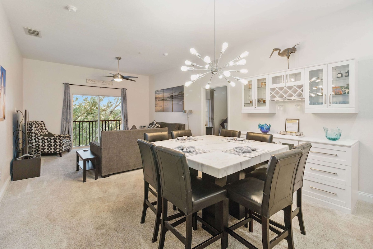 A taxa de plataforma de 18,5% é paga pelo anfitrião. Condomínio fechado, segundo andar, 2 quartos, 2 banheiros, unidade final, varanda grande com tela. Os hóspedes têm acesso a 4 piscinas comunitárias, um clube, uma quadra de tênis, quadras de vôlei de areia, caminhada panorâmica pela natureza e um restaurante/bar na piscina. A menos de 16 km do Walt Disney World. 1176 pés quadrados de conforto e valor - estadia confortável a um ótimo valor, não luxo ou perfeição no estilo hotel. **É necessário o registro do hóspede principal com documento de identificação através do portal do hóspede.