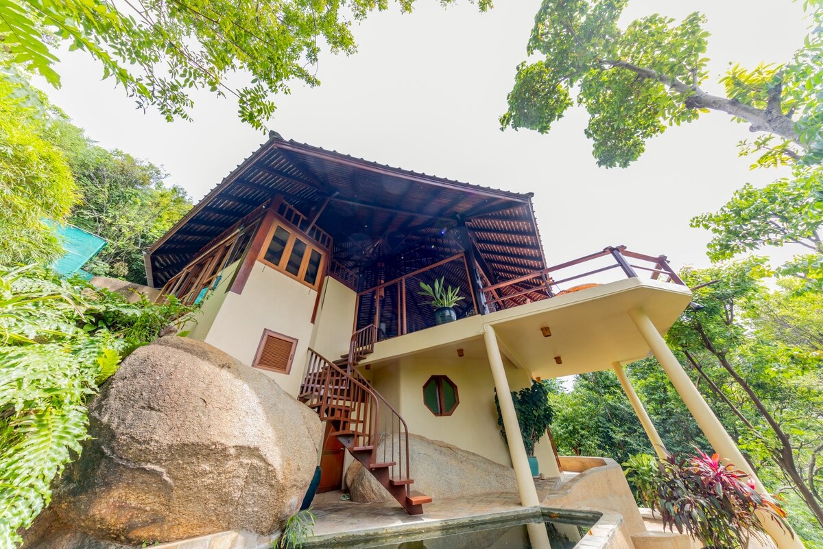 Situado no topo das belas colinas de Lamai e a uma curta distância de carro da praia, o Firefly Bungalow oferece excelentes vistas, total privacidade e a oportunidade de experimentar a vida selvagem única da ilha, incluindo macacos, morcegos e muito mais. A unidade é auto-suficiente e vem com uma cozinha (equipada com louças, talheres, chaleira e geladeira), ar-condicionado, banheiro privativo e varanda. Mergulhe na natureza ficando neste belo bangalô na selva.