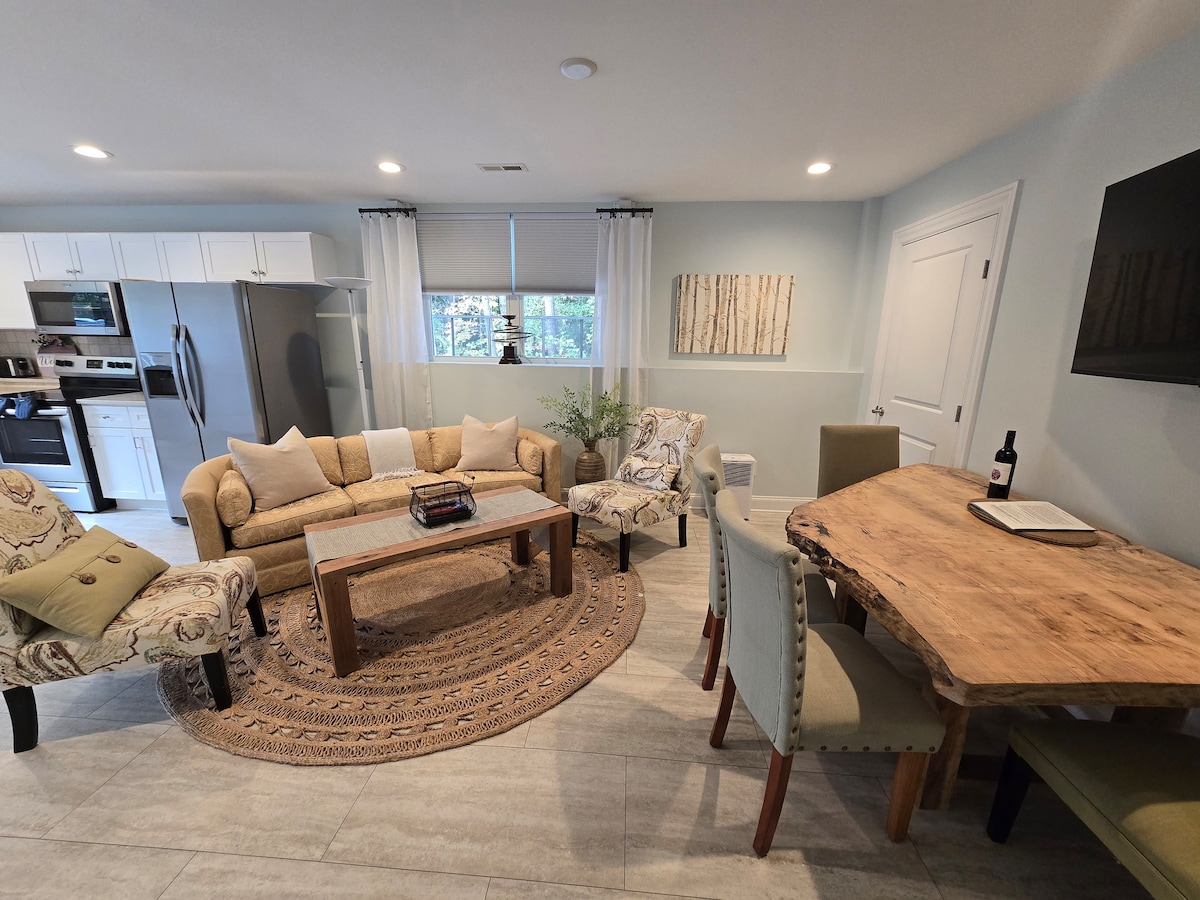 Great for a 1st responder, Corp traveler or University athlete parents. Situated in a quiet, safe neighborhood, this newly renovated suite includes 1 bd (Queen)/ 1 ba with private keyless entry. 1/2 mi from dozens of restaurants and stores (Target, Walmart, Chick-fil-A, etc) Kitchen includes Keurig coffee/tea station & washer-dryer. LR include ROKU TV & cable, Free WIFI. Easy access to 74 bypass, just 20 min from downtown Charlotte and 25 to CLT airport. Truly your home away from home!