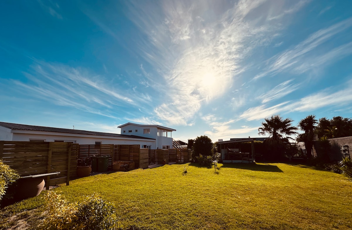 "Quente e luz" unidade de hóspedes independente a apenas 150 m a pé de uma bela praia, localizada no meio do caminho entre Langebaan e Club Mykonos! Este apartamento no piso térreo tem uma sala de estar com cozinha acoplada (geladeira, fogão de indução, forno de micro-ondas, chaleira e torradeira) e um quarto separado com banheiro privativo completo. Tanto a sala de estar quanto o quarto têm ventiladores e aquecedores separados para conforto, além de portas deslizantes para seu próprio fogão/pátio. Uso comum de grandes áreas de braai e piscina. Estacionamento privativo para 1 carro.