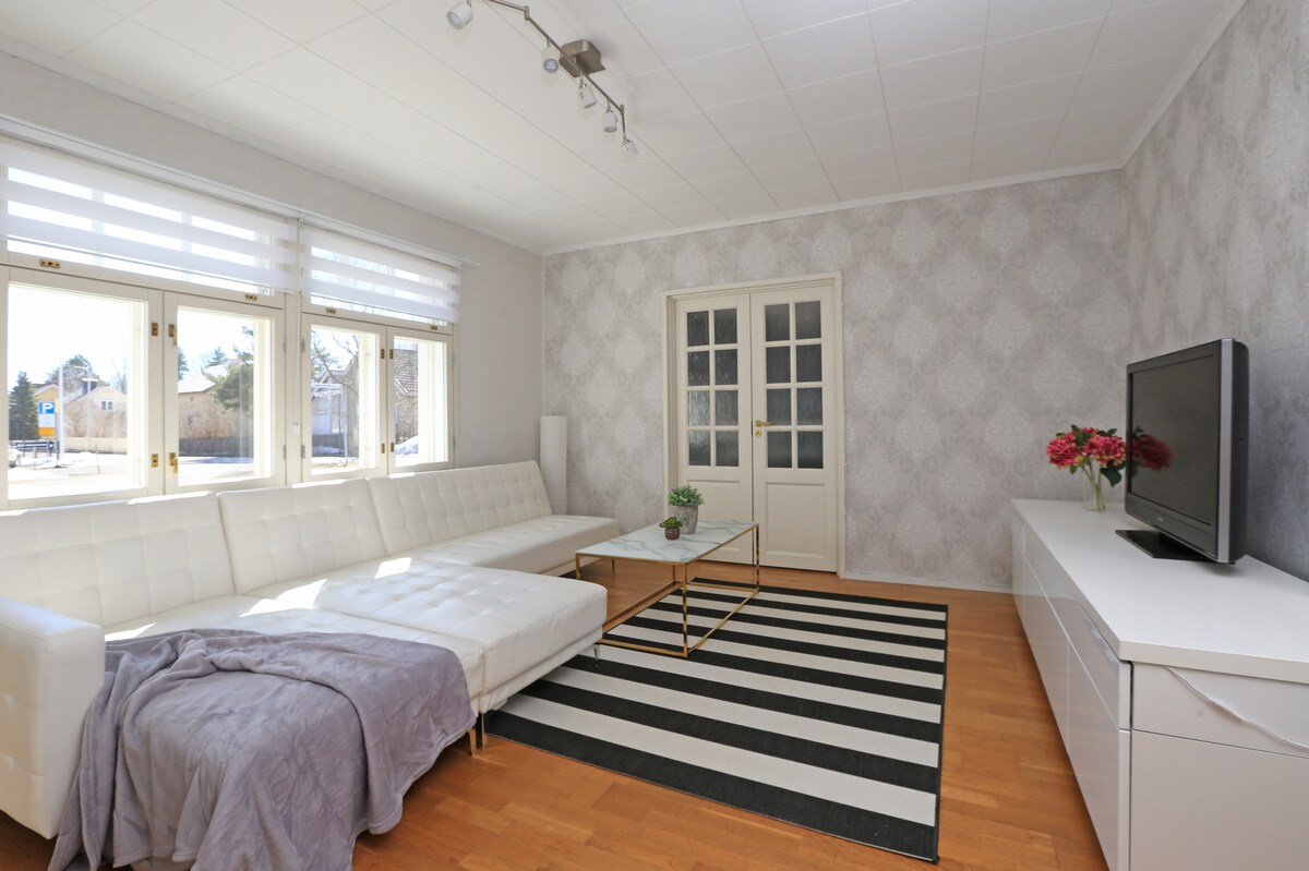 Casa aconchegante para uma boa estadia para relaxar em um ambiente tranquilo. Casa privativa de 100m2, cozinha, sauna e três quartos. A apenas 10 minutos a pé do centro da cidade. Quintal privativo com churrasqueira. Estacionamento gratuito. Os vizinhos estão próximos. 4 minutos a pé para o ponto de ônibus, 4 minutos a pé para a estação ferroviária e 5 minutos de carro para o aeroporto. Wifi.