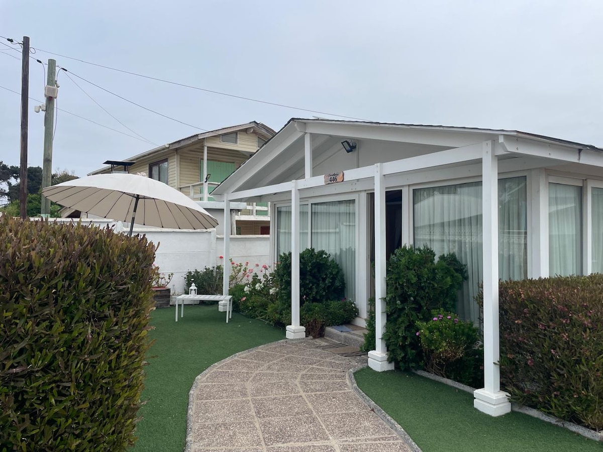 Casa interior con entrada independiente y terraza independiente,sólo se comparte el estacionamiento, así que tendrán independencia y privacidad,el lugar es muy tranquilo.Equipada para tres personas,refrigerador,cocina,horno,platos y ollas. Las Cruces es un balneario muy tranquilo y familiar, existen muchos lugares para ir a caminar y conocer., también hay muy buenos restaurantes con gastronomía del mar