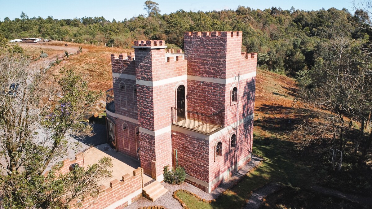 É um castelo mesmo, uma arquitetura rara no Brasil. Localizado em uma montanha de natureza exuberante, circundado por trilhas em rios encachoeirados e uma vista que vai a 200 km de distancia. Suítes decoradas com carinho, salão de refeições e cozinha equipados. No lago há tilápias e os cavalos divertem adultos e crianças. Há árvores frutíferas em todas as temporadas e especiarias para a cozinha na horta. Quatro das 12 suítes possuem ar-condicionado, as demais possuem ventilador no teto.