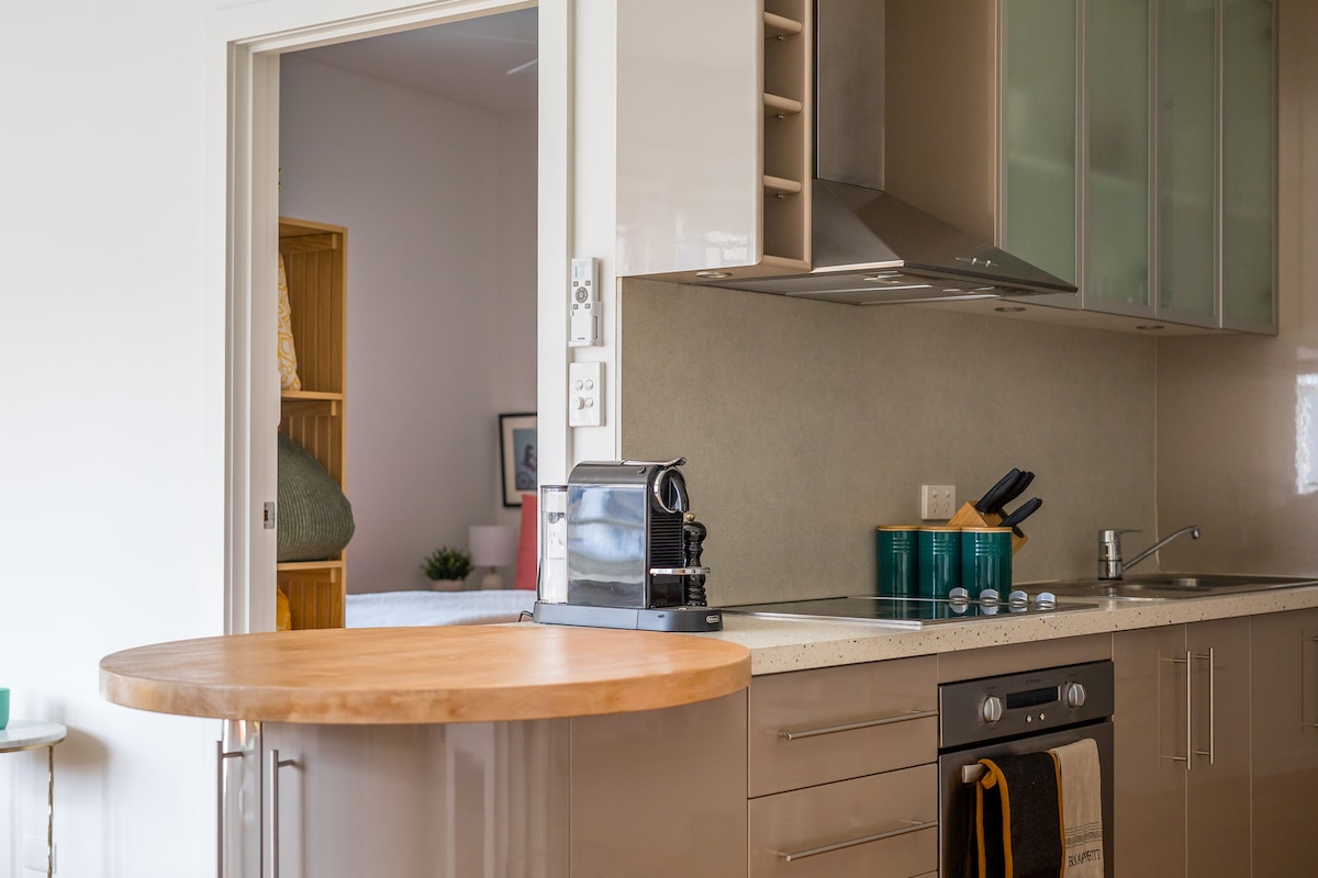 Esta suíte elegante, espaçosa e de um quarto oferece privacidade e conforto. Você pode deitar na cama e apreciar as vistas panorâmicas do belo rio kanamaluka/Tamar até as colinas além e as luzes brilhantes da cidade à noite. Saboreie um vinho local no pátio no verão ou em frente à aconchegante lareira a lenha no inverno, enquanto observa wallabies, pequenos e fofos pademelons ou a nossa equidna residente. Um adorável café da manhã continental com itens de padaria caseiros preparará você para um dia de observação.