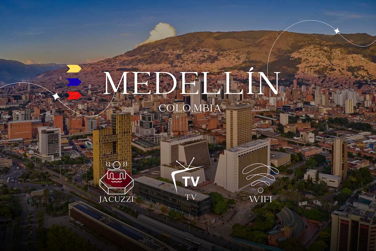 Quarto aconchegante + Wi-Fi + Lavanderia + Piscina + TV + Jacuzzi em Medellín