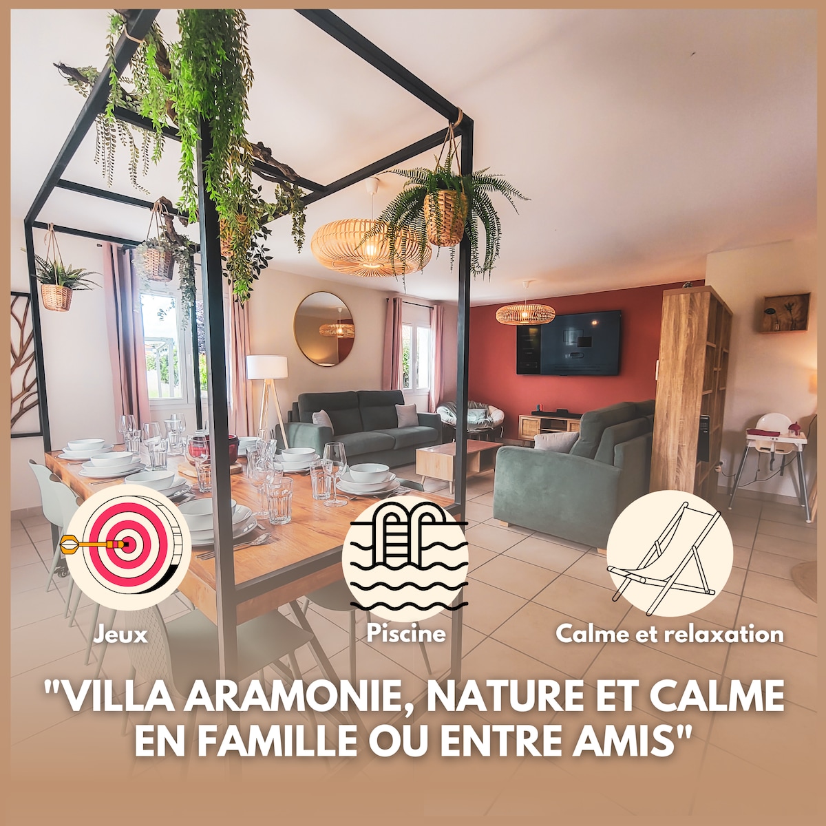 Casa de 300 m² no campo com vista para as vinhas... Com uma área de estar de mais de 100 m², 5 quartos, 5 banheiros, 6 toaletes. Uma piscina coberta aquecida durante todo o ano... Tudo aberto para a natureza com um espaço ao ar livre de mais de 7000 m², incluindo um lounge de verão com uma piscina ao ar livre e uma quadra de petanca... Ideal para uma estadia em família ou com amigos! (Tomada para recarga de veículo elétrico opcional)