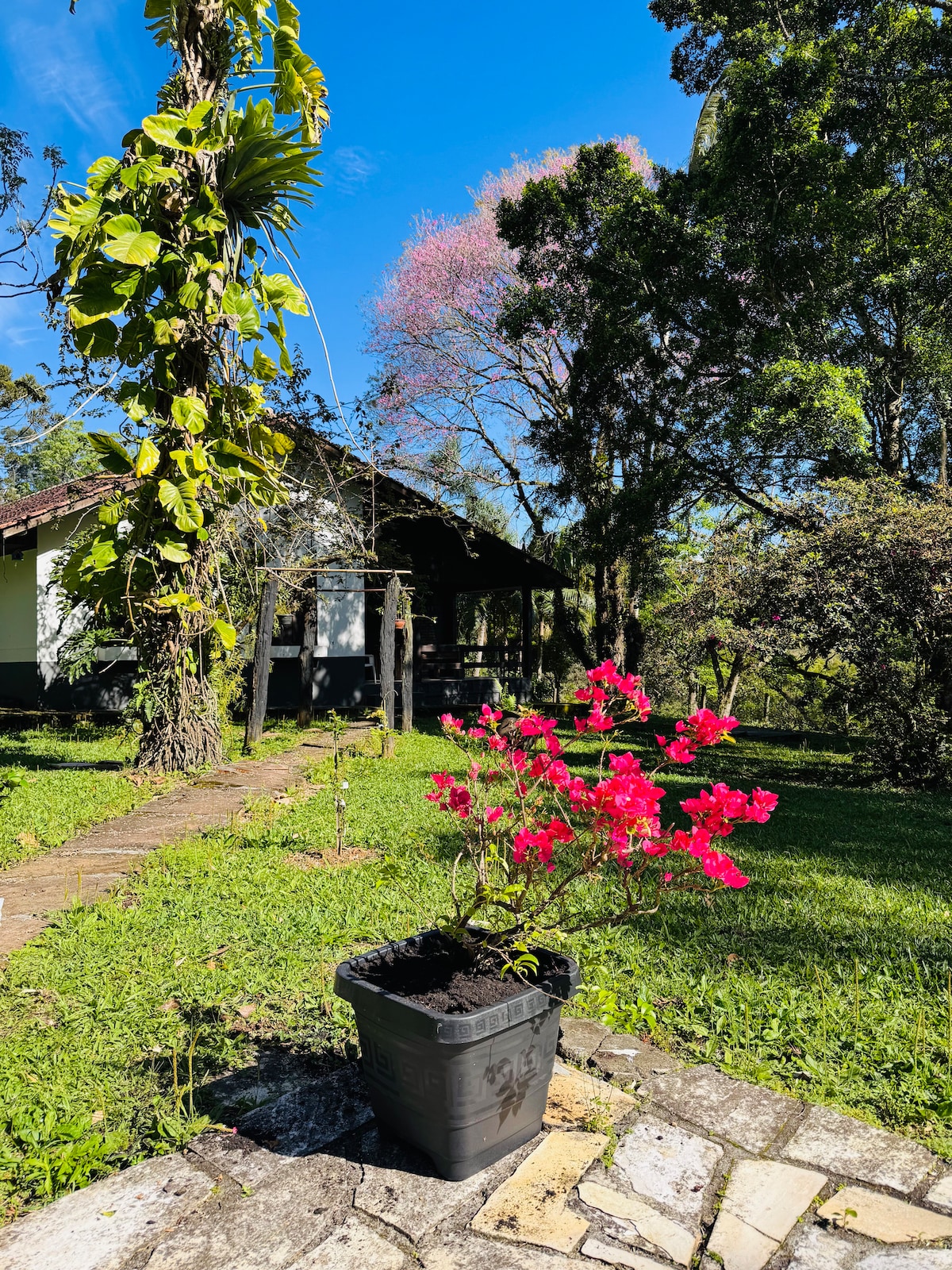 Casa de sítio contornada pela natureza, lugar calmo e aconchegante, cercado por árvores e flores, açudes para pescaria e passeio de caiaque, com excelente vista e local para caminhada em contato direto com a natureza e animais