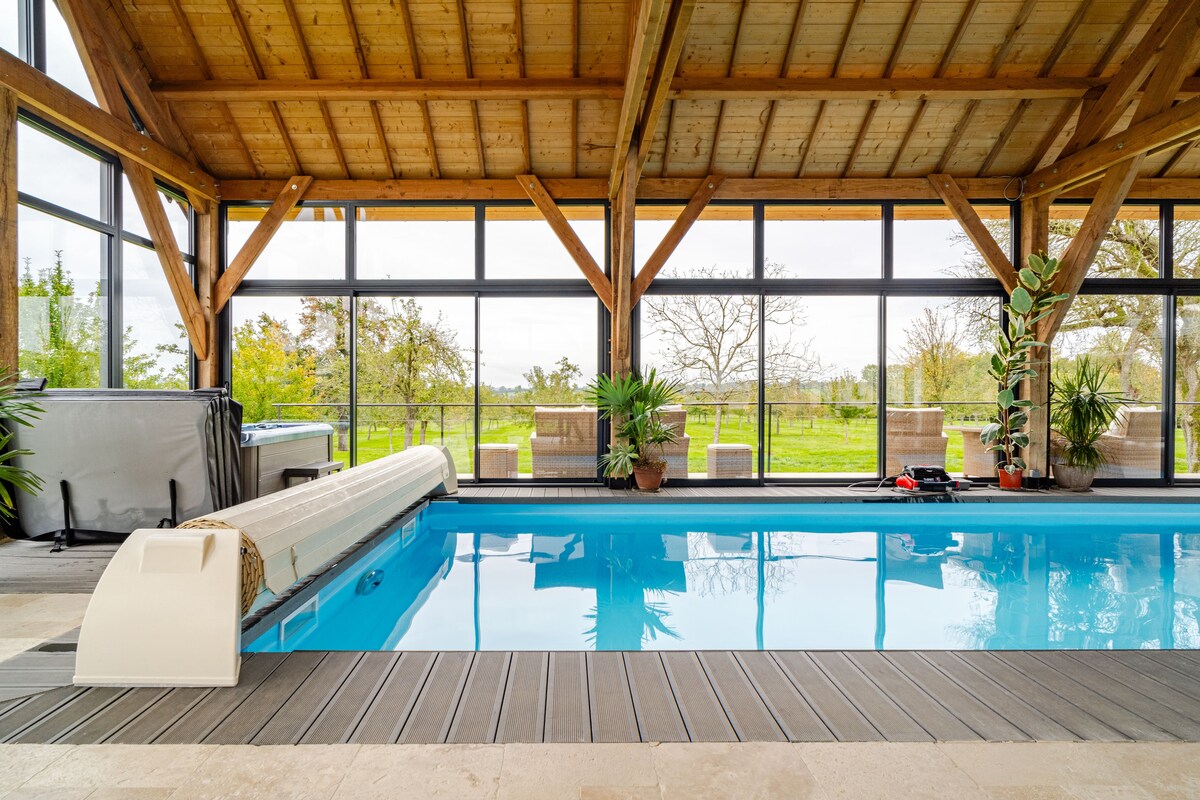 Uma bela vila no meio da Normandia com uma área de 70m2 com materiais de alta qualidade e piscina aquecida durante todo o ano em um terreno fechado de 1500m2 com entrada privada e estacionamento Um canto moderno e acolhedor do paraíso. As janelas do chão ao teto oferecem grande brilho e vista para a piscina aquecida e para o parque. Não esquecido, você está sozinho na casa de campo Um lugar perfeito para relaxar com a família, casais ou amigos. Equipamentos para bebês podem ser fornecidos