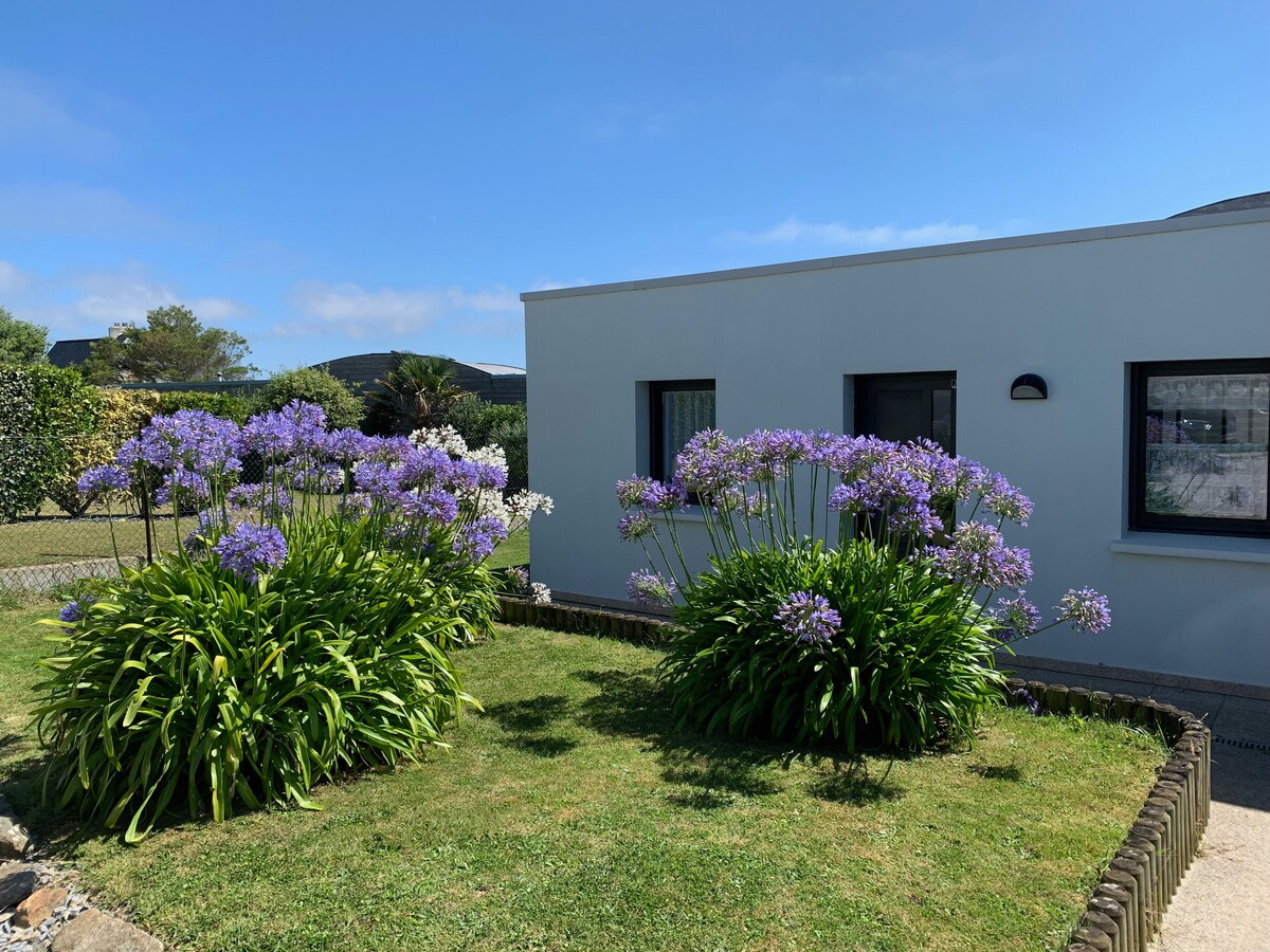 Venha admirar o belo pôr do sol a partir deste alojamento de 50 m2 localizado a 200 m da praia de Illien e a 500 m da de Blancs Sablons, CALMA É GARANTIDA. É nivelado, em uma propriedade privada de 2500 m2, sem qualquer vista. Possui vaga de estacionamento, terraço próprio com churrasqueira, mobiliário de jardim e relaxamento. Vistas excepcionais da praia e das ilhas de Ushant e Molène. A trilha costeira GR34 passa na frente da propriedade.