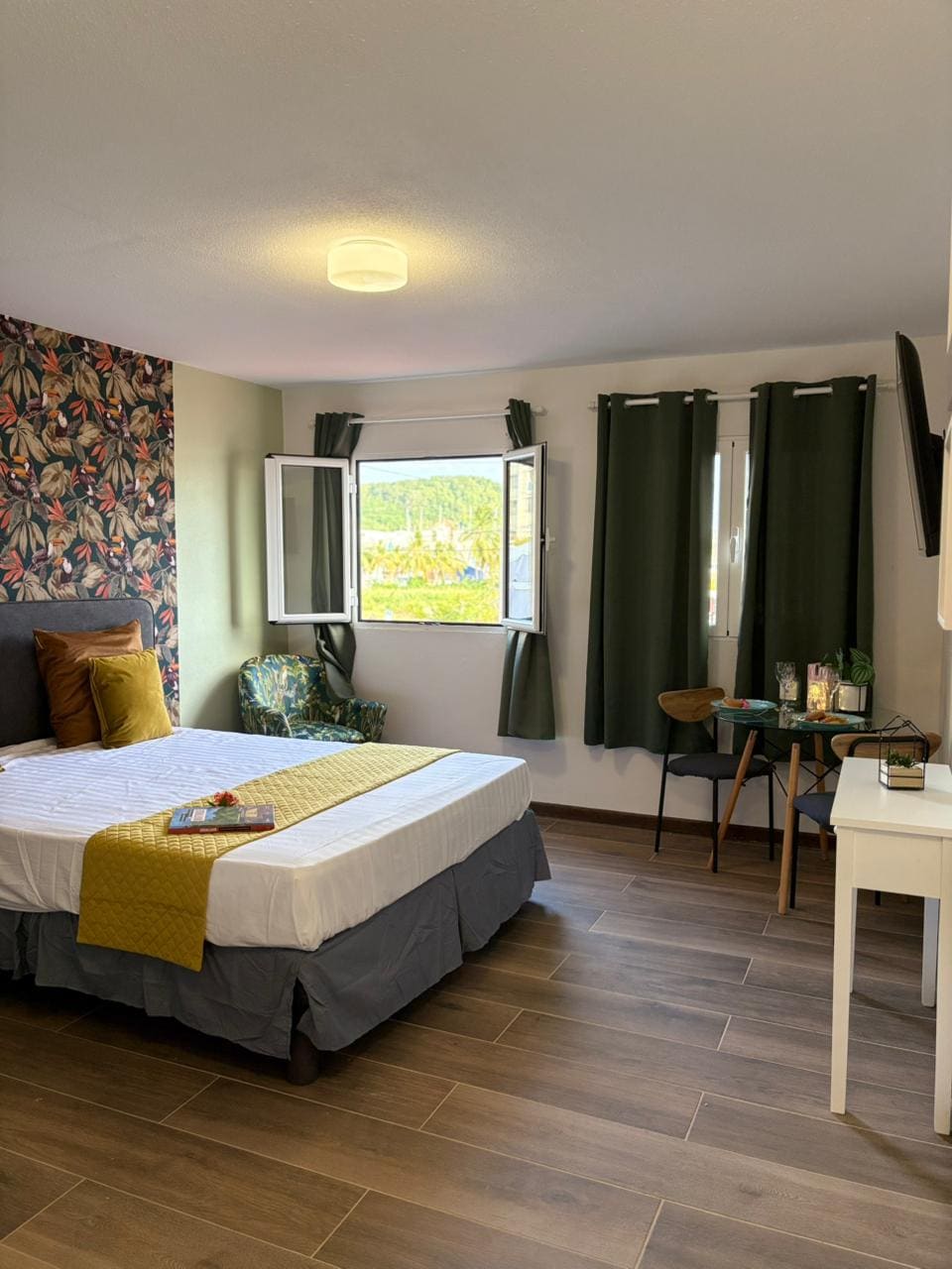 Feche os olhos... O dia declina em Le Marin, e uma luz roxa suave vem acariciar as paredes. O pôr do sol está acordando... um refúgio chique e relaxante, onde o design contemporâneo dialoga com a doçura tropical. Entre madeiras quentes, vegetação exuberante e luz suave, cada detalhe foi pensado para oferecer mais do que uma estadia: uma experiência de lounge, refinada, sensorial e profundamente refrescante.