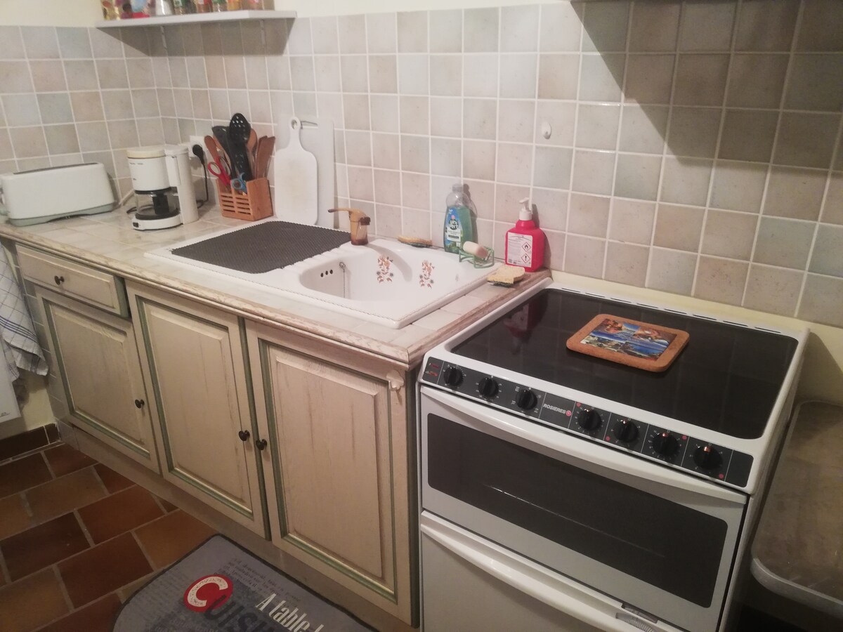 Nas alturas de Draguignan, apartamento independente, composto por: - Sala de estar (TV, mesa de centro, sofá-cama) - Cozinha totalmente equipada (fogão, micro-ondas, geladeira, pia, louça para 4 pessoas, cafeteira Nespresso, chaleira, torradeira, roupa de cama), ventiladores. - Quarto com cama de 140 cm, guarda-roupas e cabeceira. Berço desmontável. - Banheiro com chuveiro, vaso sanitário, secador de cabelo, toalhas. - Estacionamento fechado. - terraço privativo com móveis de jardim, relaxamento, churrasqueira.
