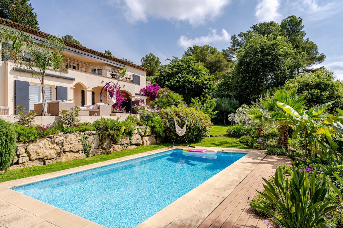 Bela casa moderna perto do campo de golfe Opio. Cozinha aberta totalmente equipada, sala de estar iluminada, 2 quartos, incluindo uma suíte master com banheiro privativo (banheira, WC), banheiro com chuveiro e WC independente. Exterior: piscina, área de jantar, estacionamento privativo seguro. Lojas e restaurantes a uma curta distância a pé. Praias a 30 minutos de distância, acesso rápido a Cannes, Nice, Antibes, Saint-Tropez, Mônaco. Estadia perfeita para famílias ou amigos em um ambiente tranquilo e verde!
