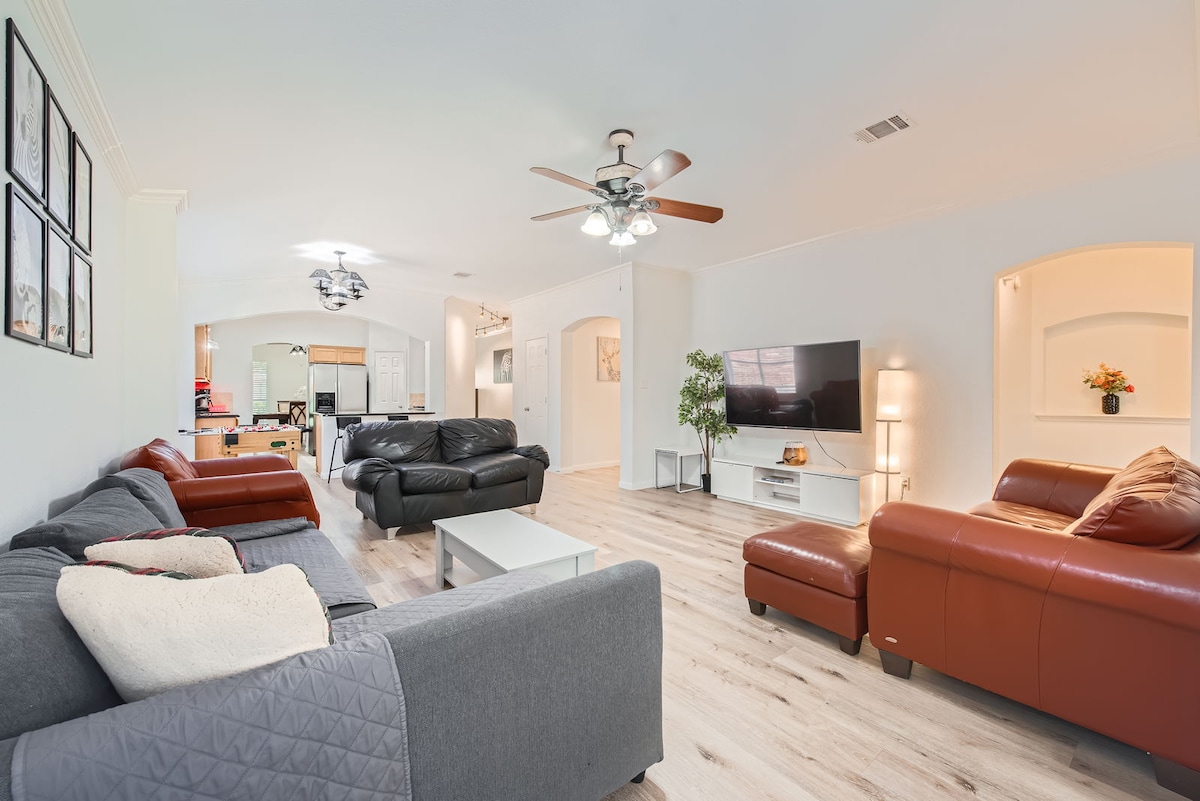 Welcome to our charming Airbnb home in Leander, just a stone's throw away from Austin! This spacious and inviting retreat offers the perfect blend of relaxation and entertainment, making it an ideal choice for your stay. The home is in a great location and is less than five minutes from 183A, Grocery Stores, Shopping, The Cedar Park Center and The Crossover. We are also less than 20 minutes from the Domain and 30 minutes from downtown Austin.