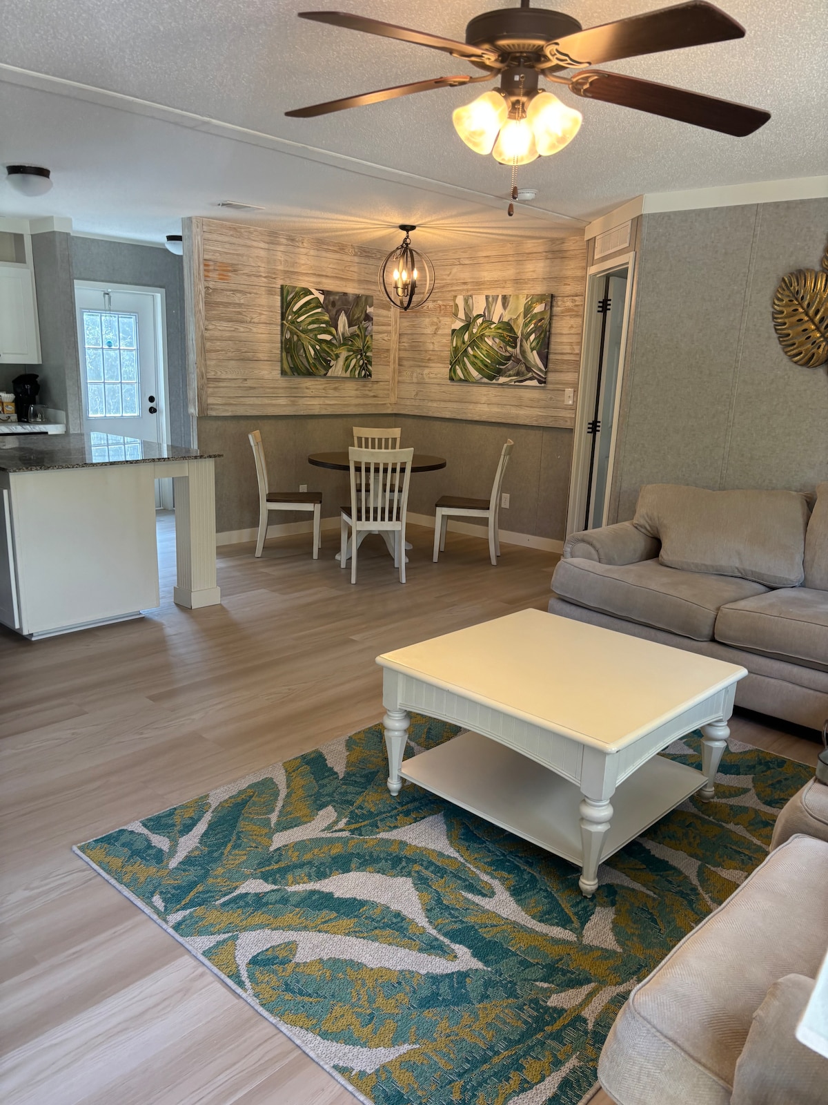 "Latitude 28" em Floral City é uma espaçosa casa móvel 2 BR/2BA. Uma vez dentro, você encontrará um conceito de vida semi-aberto com quartos divididos; roupa de cama aconchegante com travesseiro Queen Pillowtop e banheiro no quarto principal, o quarto de hóspedes oferece um topper de espuma de gel completo. A área de estar tem elementos de design exclusivos de um artesão local. As comodidades incluem Smart TV de 40", Wi-Fi, cozinha totalmente equipada com Keurig. Grande sala de sol com vista para o amplo gramado, ótimo para observação de pássaros e localizado a apenas 0,07 milhas da trilha para entusiastas de ciclismo!