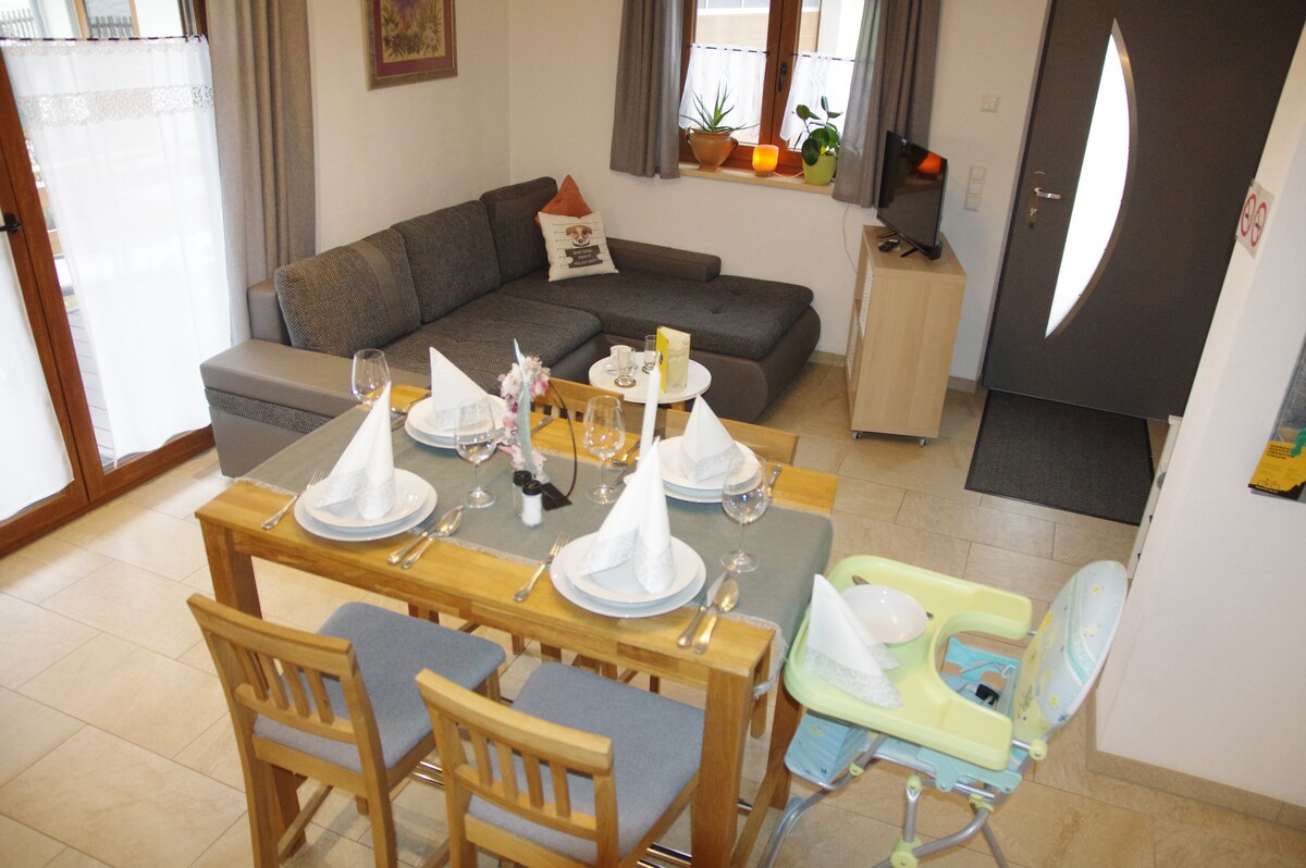 No apartamento de férias na minha casa de madeira 'Casa Linda' com vista para o Breitenberg, Kienberg e Falkenstein, você pode deixar a vida cotidiana para trás e recarregar suas baterias e obter muito ar fresco sob minha árvore de tília de 400 anos. Numerosas atividades na paisagem natural variada são possíveis e recomendadas na área circundante em todas as estações. A anfitriã ficará feliz em fornecer informações ;)