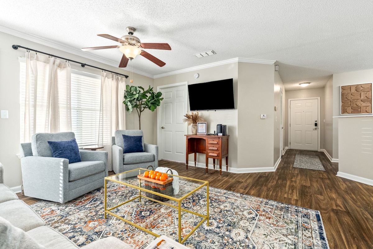 Perfeito para dias de jogo Auburn, visitar pais e escapadas de fim de semana. O Aubie's Retreat é um condomínio confortável a poucos minutos do Jordan-Hare Stadium com piscina, estacionamento gratuito, Wi-Fi rápido e check-in autônomo fácil. Ótimo para • Todos os eventos de Auburn • Visitar pais e ex-alunos • Casais ou famílias pequenas • Acomodações em trabalho em qualquer lugar O que você vai adorar • Acesso à piscina • 2 passes de estacionamento • Wi-Fi rápido + espaço de trabalho • Self check-in fácil Local • ~1,5 milhas de Jordan-Hare • A poucos minutos do campus e do centro da cidade