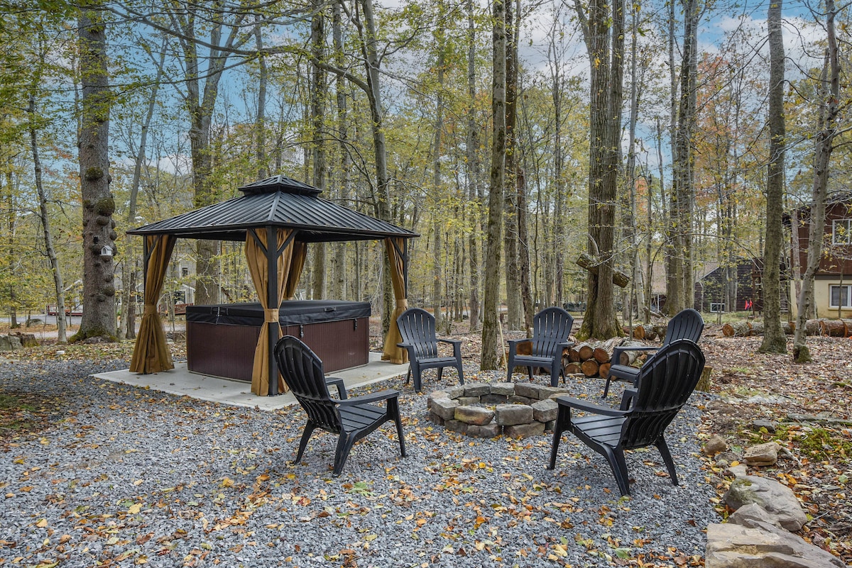 Reconecte-se com os outros e com a natureza em nossa cabana atualizada. * Confortável e aconchegante * Sala de massagem com óleos * Lareira quente e tapete de pele de urso falso * Quarto king size * Banheira de hidromassagem * A decoração é uma atualização opcional * Caminhadas começam na porta * Perto de muitas atrações locais de Pocono Idealmente adequado para um casal, este chalé está aninhado em uma comunidade pitoresca cercada por floresta estadual. Precisamos registrar os hóspedes 48 horas antes do check-in.