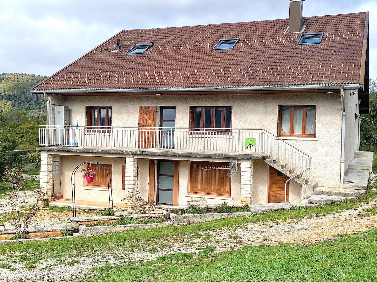 Esta acomodação recente, localizada no Parc Naturel du Haut Jura, perto dos lagos e das Montanhas Jura, será ideal para relaxamento, lazer, visitas e caminhadas! Dependendo das condições de neve, pistas e aluguel de esqui cross-country no local. Acomodação confortável adjacente aos proprietários: cozinha equipada, sala de estar no mezanino (TV e pebolim), um quarto (cama de 160×200), chuveiro, banheiro, máquina de lavar roupa, móveis de jardim, churrasqueira. Roupas de cama opcionais. Wi-Fi gratuito. Equipamento de cuidados infantis disponível.