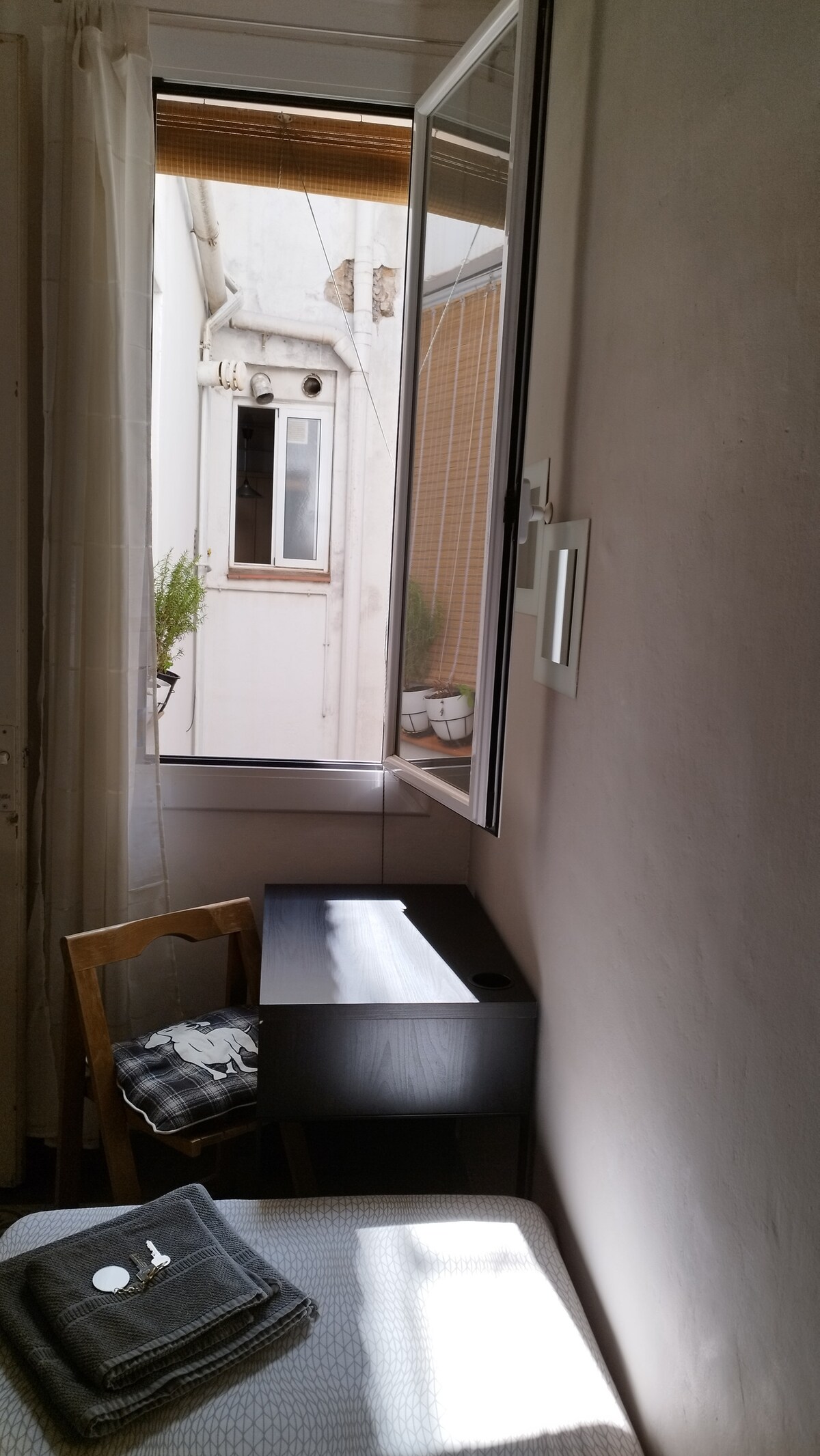 Quarto individual pequeno, casais não são aceitos, cama de 90 cm, escrivaninha, cabideiro, vista externa para o rio Besòs. Localizado a 30 minutos do centro de metrô, a 10 minutos do shopping La Maquinista, metrô perto de Santa Coloma, você pode fumar, é um 4º andar sem elevador. Horário de check-in a partir das 17h. Você terá o que precisa para tornar sua estadia confortável e tranquila, somos dois em casa e temos dois gatos. Bem-vindo à casa! 🤗
