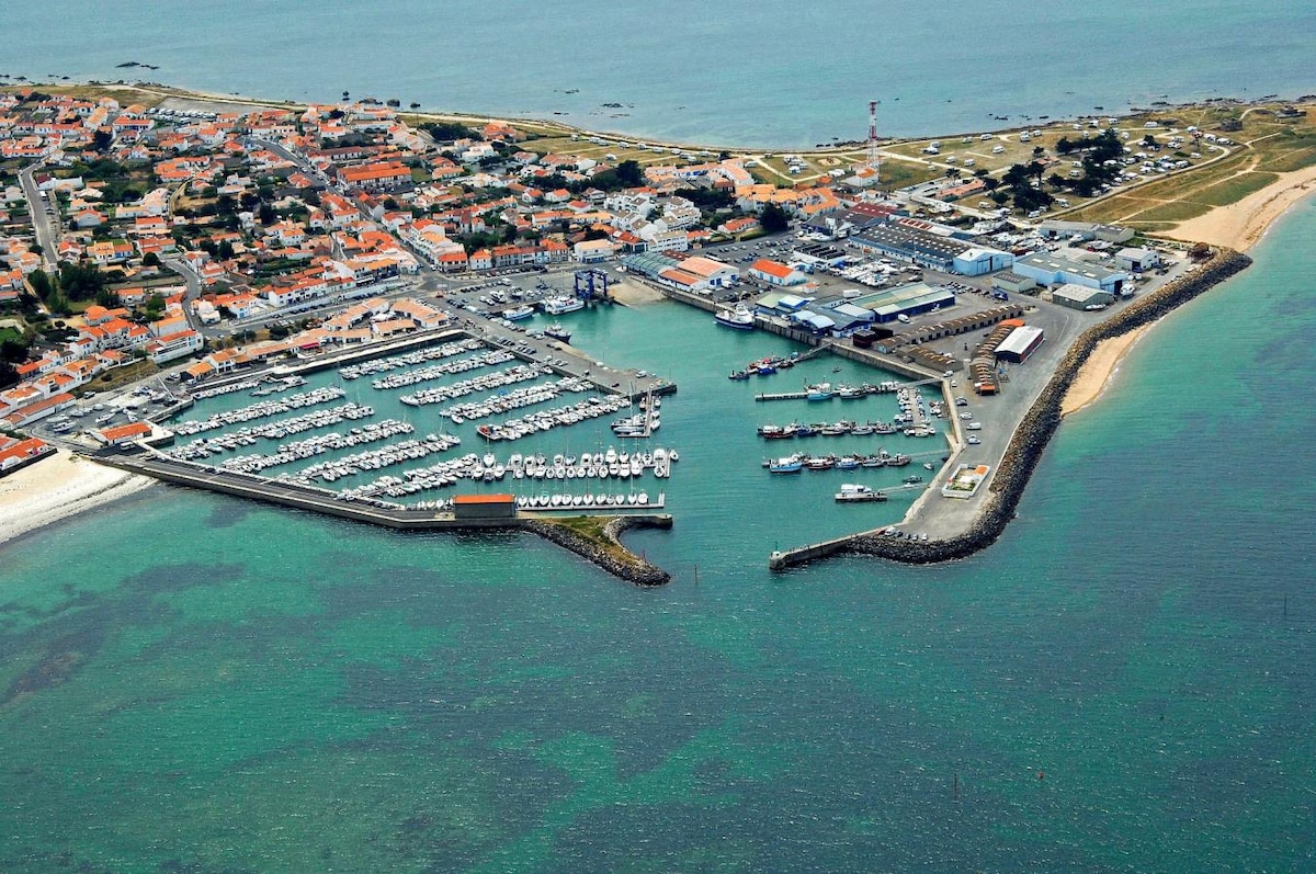 Perto de restaurantes, lojas, praia, transporte público e atividades para famílias. Você vai gostar do meu apartamento pela sua proximidade com o porto de Herbaudière. Meu alojamento é perfeito para casais e famílias com crianças e dispõe de uma sala de estar (2 sofás, TV de tela plana), cozinha (forno, geladeira/freezer, máquina de lavar louça, micro-ondas, toda a louça necessária) 2 quartos, um banheiro com chuveiro, vaso sanitário, máquina de lavar roupa. 2 bicicletas.