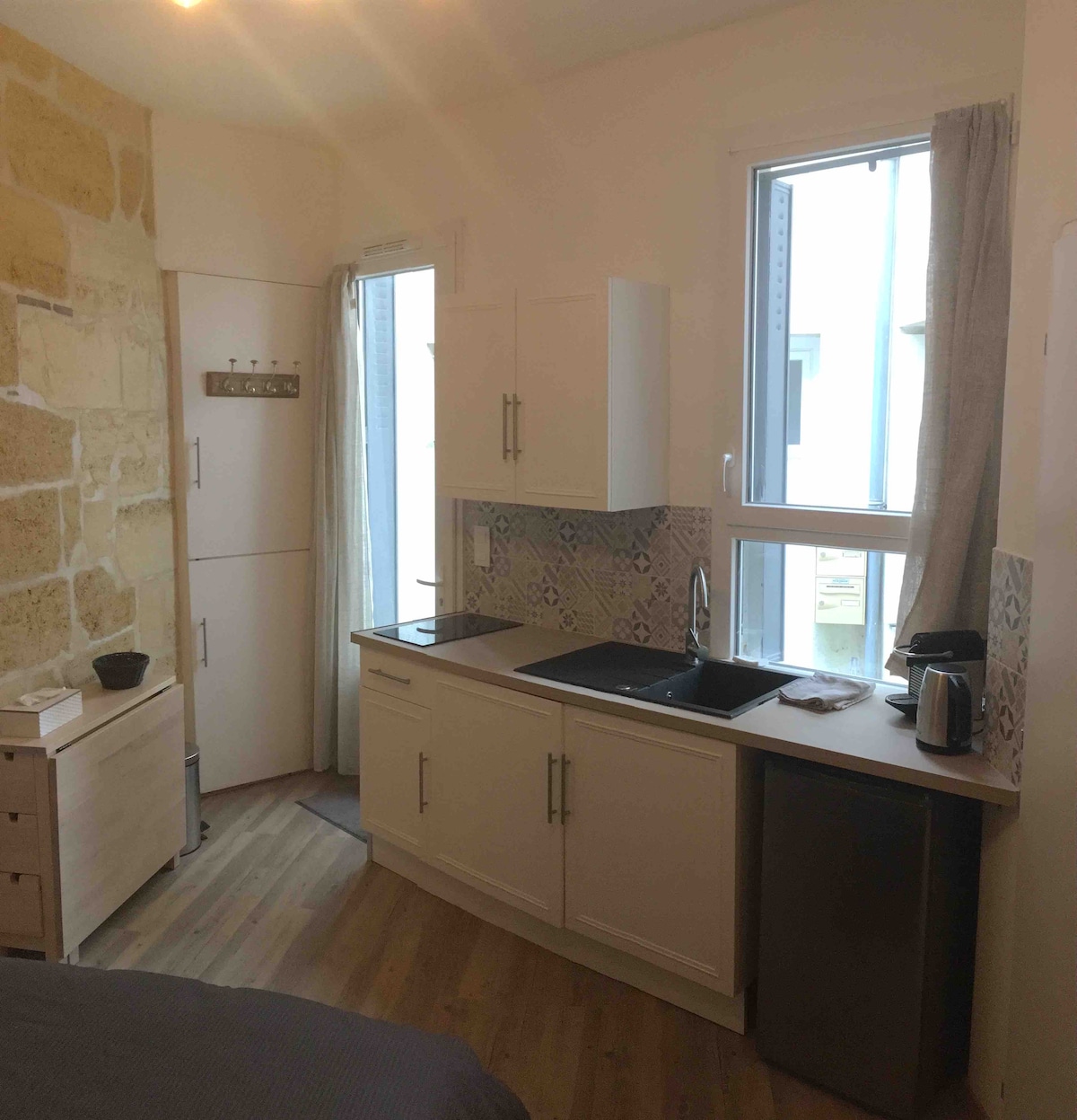 Joli studio en pierres de taille, en rez-de-chaussée avec entrée privée, refait à neuf en 2022 , situé dans une impasse calme, uniquement piétonne, dans l’hyper centre à 2 minutes à pieds de la place du marché. Equipé d’une télé, wifi fibre, frigo, plaque induction, micro-onde, machine à café Nespresso, douche italienne, vmc. 8 minutes à pieds de la gare, 20 minutes en voiture du tramway de Bordeaux, 10 minutes de St Emilion . 5 minutes en voiture du centre aquatique « la calinesie »