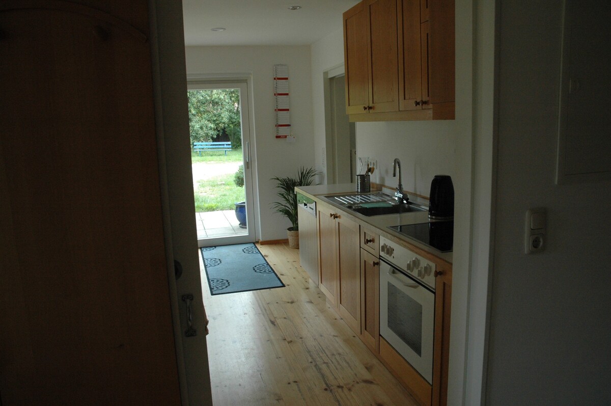 O apartamento tem sua própria entrada, o terraço coberto com assentos/lounging e churrasqueira fica ao lado. A cozinha aberta totalmente equipada (forno, micro-ondas, cafeteira) oferece espaço para uma família ou no máximo três pessoas com mesa de jantar. A área de dormir é compartilhada na sala de estar e no quarto. Estacionamento/garagem privativa em frente, bicicletas podem ser estacionadas na garagem e e-bikes podem ser carregadas.